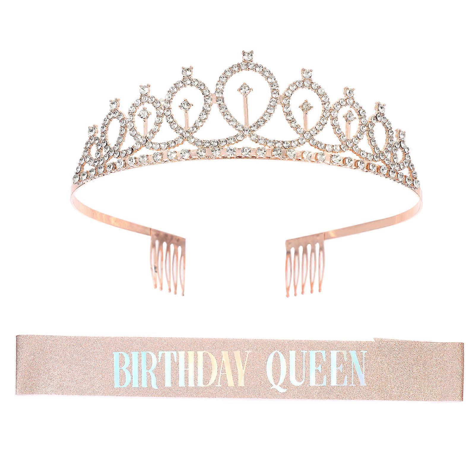 Elegant Hair Wear Crown Headdress with Birthday Crown Decor 2Sets