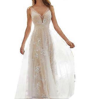 Elegant V Neck Wedding Dress with Lace Appliques for Women - Bride Style