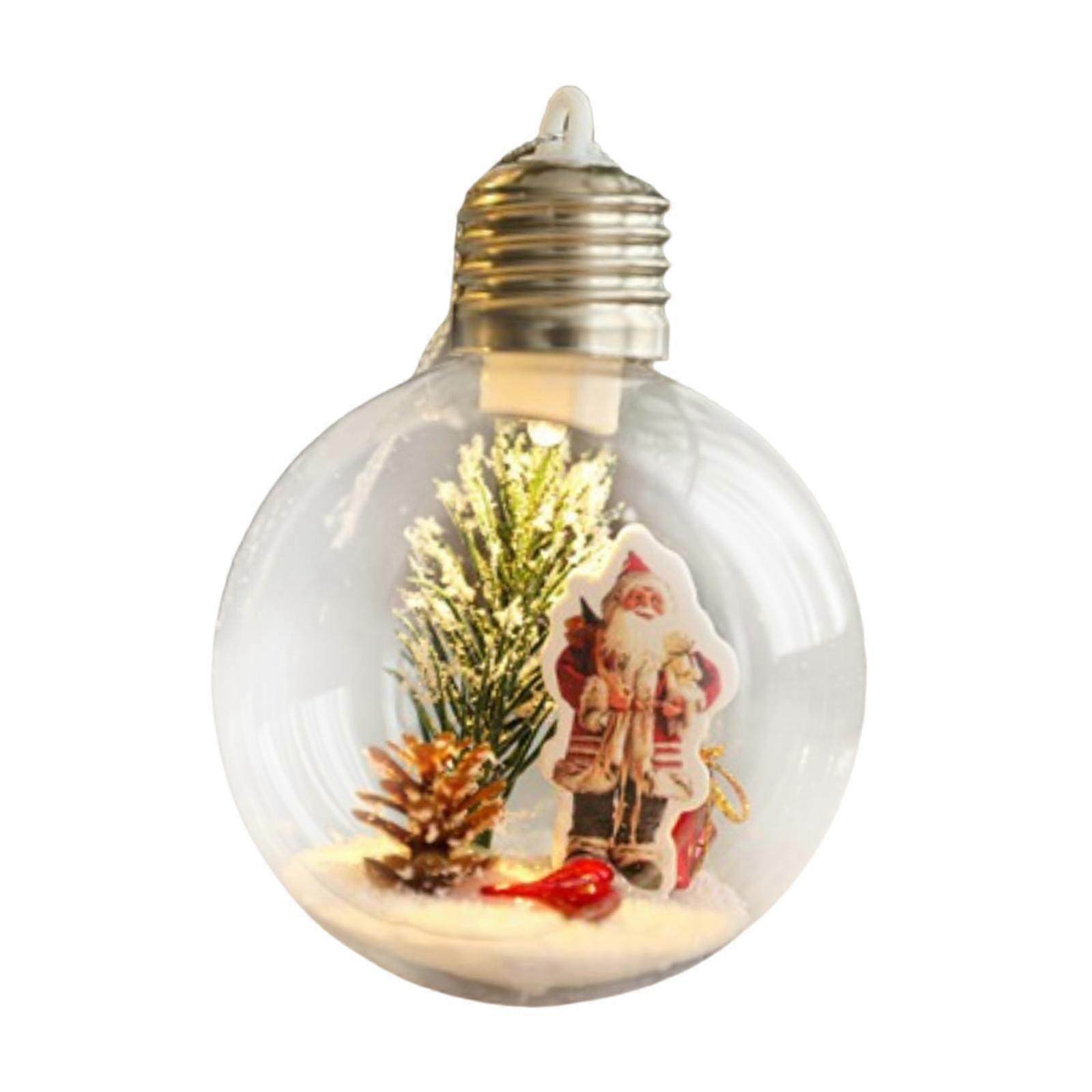 Description: Versatile Christmas Decor: This Christmas ball ornament is designed with creative Christmas theme, classic and decorative, great for Xmas decorPremium Material: The Christmas hanging ornament is made from plastic material, ensuring longevity and durability, great for holiday season decorationWith Light: The Christmas bauble is designed with lighting effects, easy hanging on Christmas tree, yard, fireplace, doors, window, and walls, etcWide ApplicationsChristmas Tree Ball Ornament is widely suitable for Xmas, New Year, Holidays, festivals, themed party, etcPackage Includes: Each package contains 1 Christmas tree hanging ornament ornament, great for decorating home, living room, shopping malls, cafe, restaurant, etc Specification: Material: Plastic Size Chart: 8 cmx6.5 cmx11 cm/3.15 inchx2.56 inchx4.33 inch Package Includes: 1 Christmas Bauble Note: Please allow slightly errors due to manual measurement and different monitors.