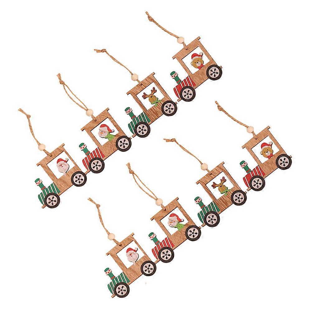 Christmas Wood Decorations Wooden Mini Train Hanging Ornament for 16Pcs