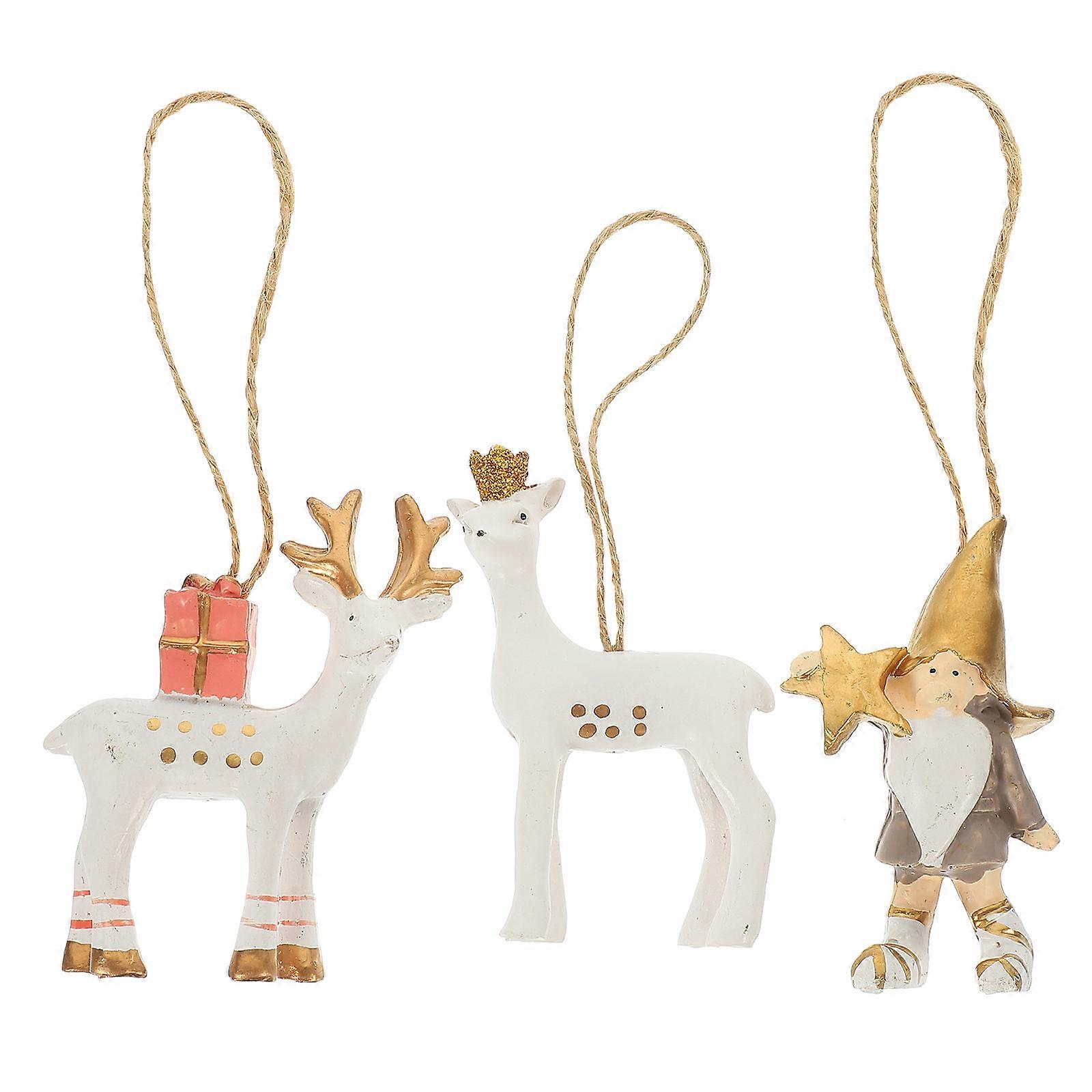 Christmas Hanging Ornament Deer and Santa Resin Decoration 3Sets Pack