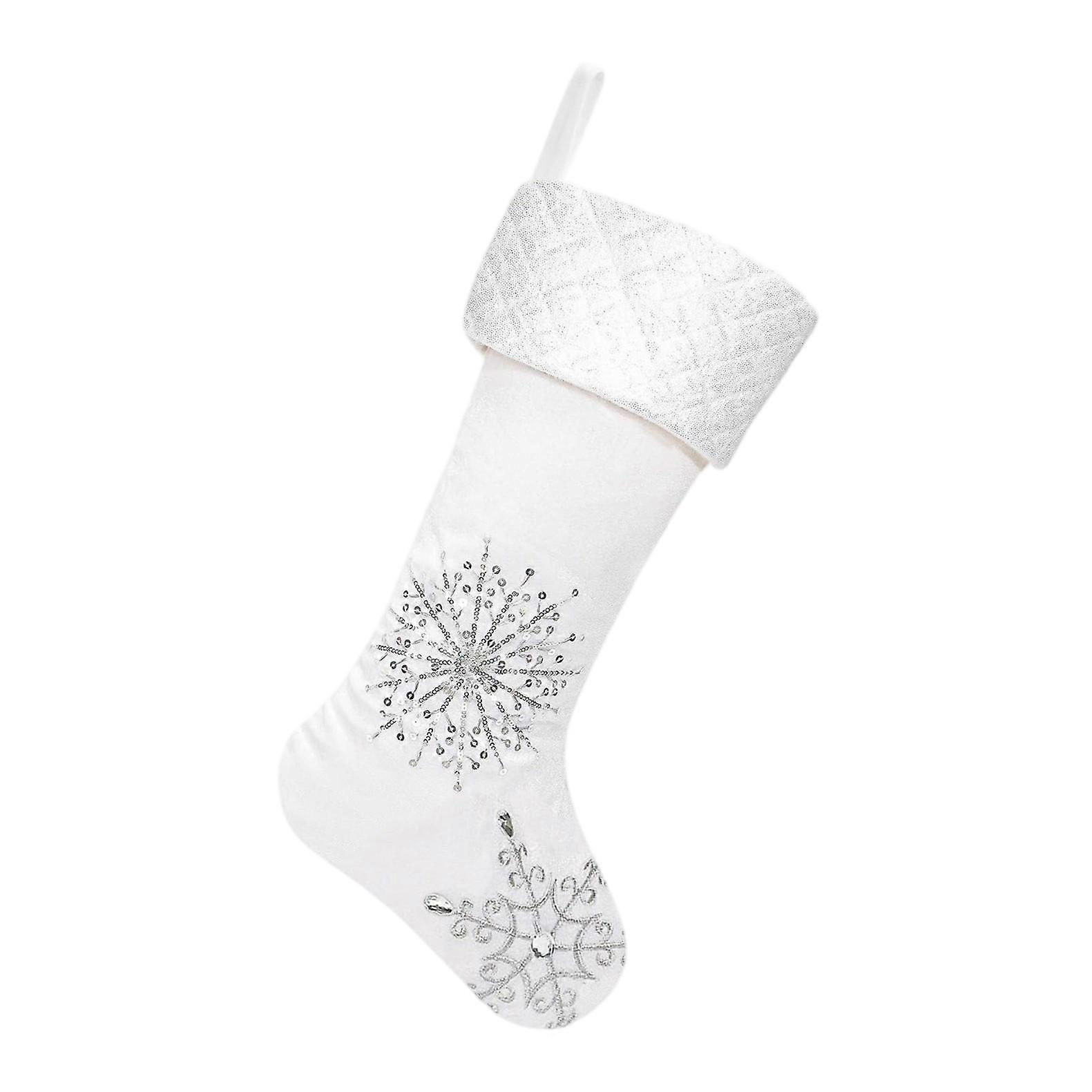 Christmas stocking hanging ornament, white with glitter snowflakes, suitable for multiple occasions as a gift