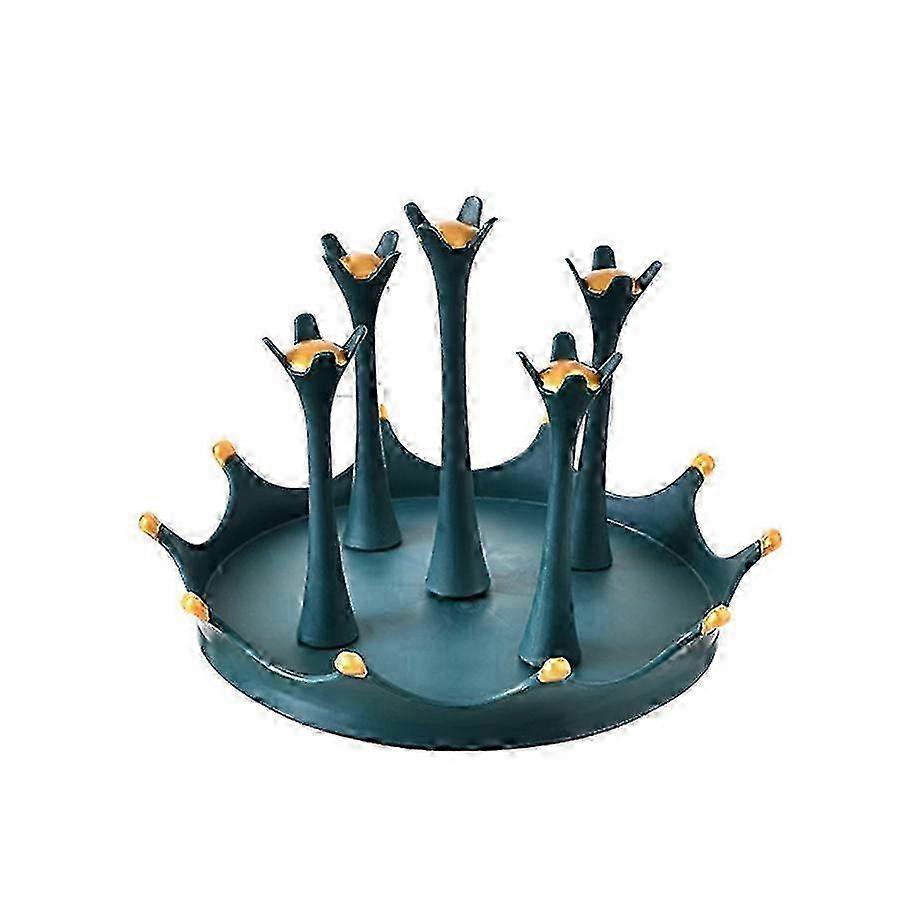 Rotary Glass Cup Drying & Storage Rack with 5 Slots Green miao8