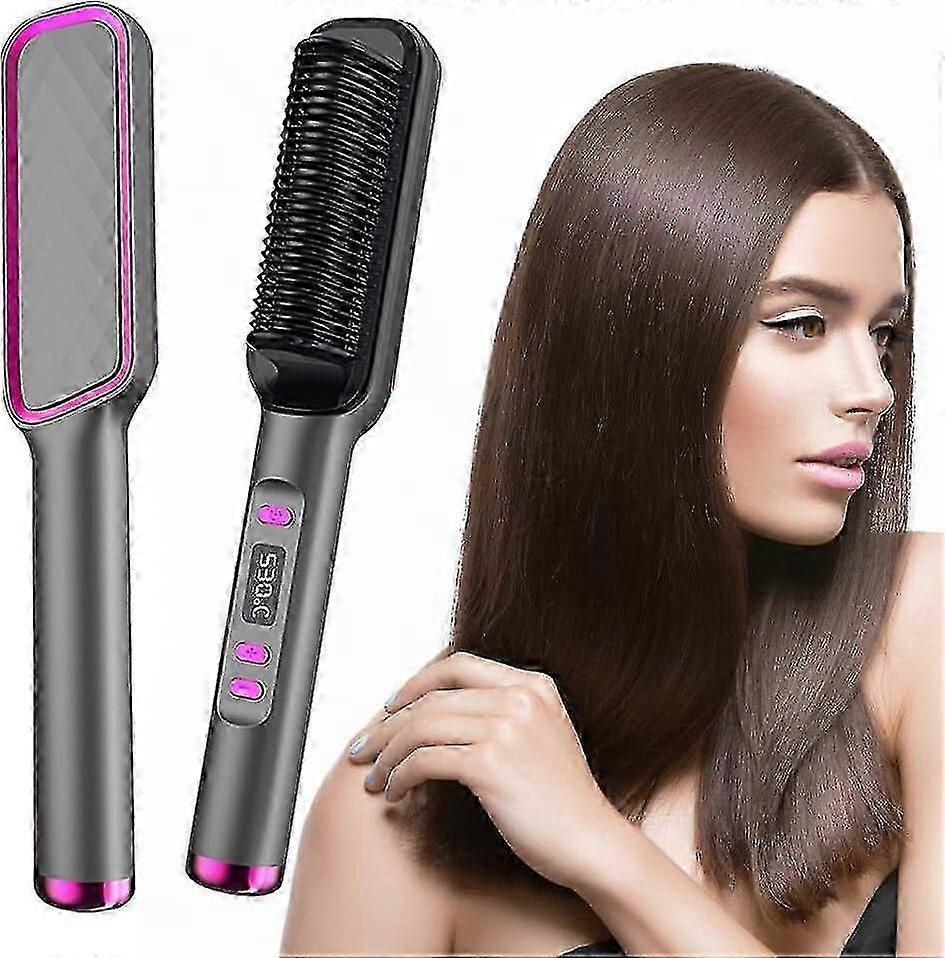 Professional Hair Straightener Brush with LCD Display, 30 Temperature Settings, Quick Heating 80-230C, Anti-Scald Design for Smooth Styling