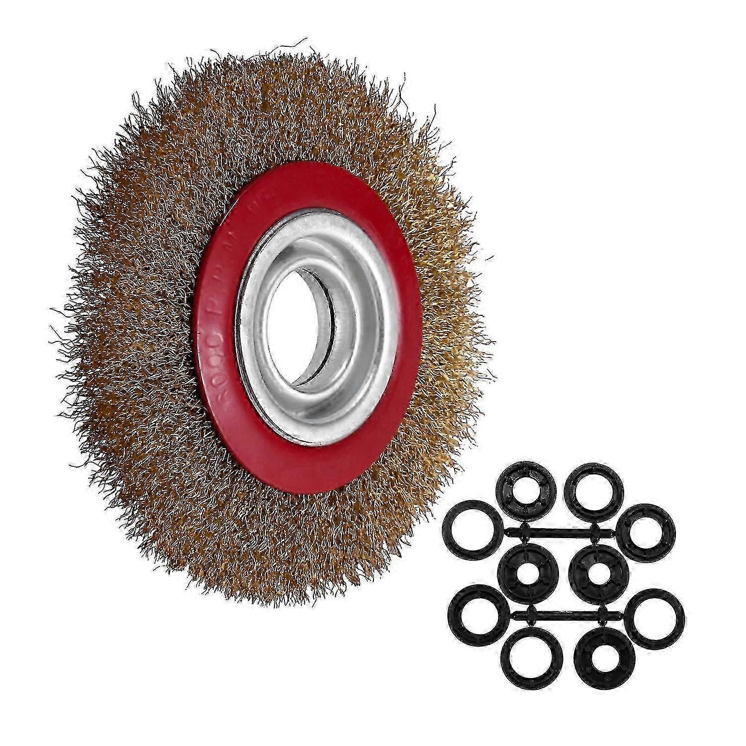 Wire brush wheel for benchtop grinders + reducer adapter ring, 6 inches (150 mm)