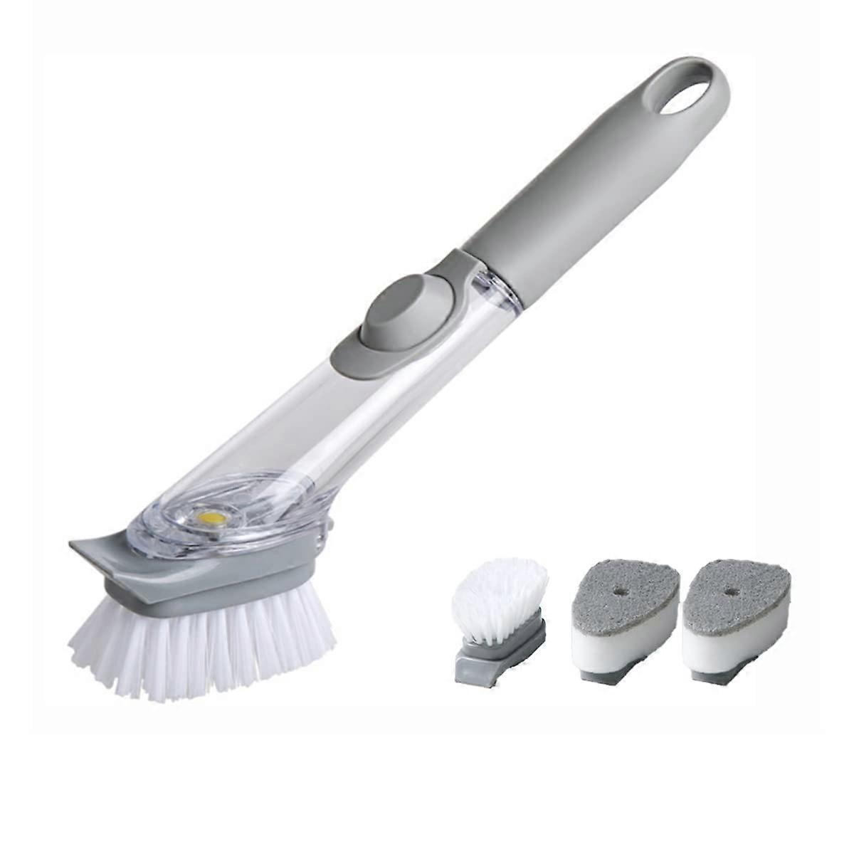 Dish brush with soap dispenser, cleaning brush with handle and multi-purpose brush with 4 replacement heads