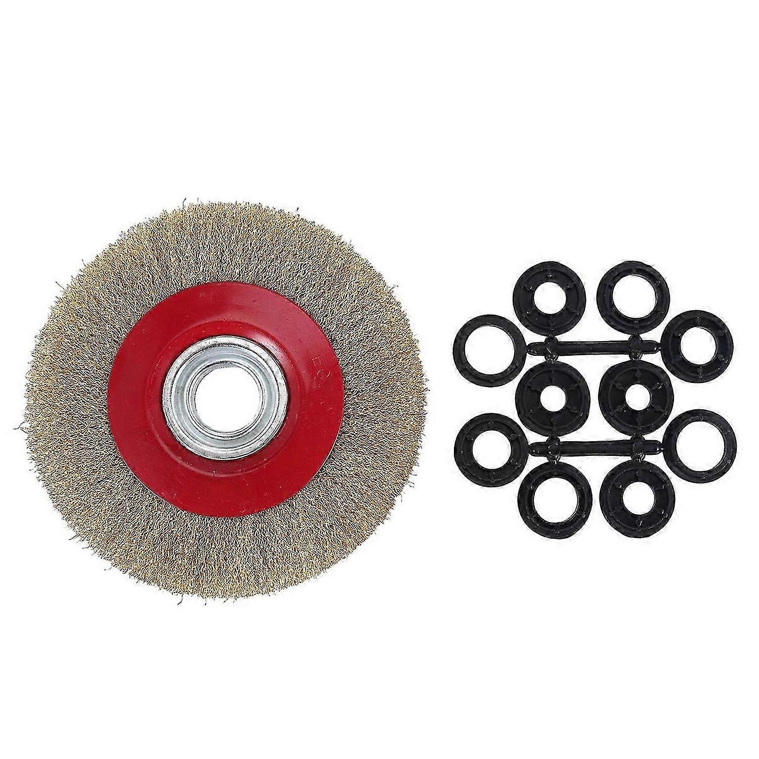 1Pcs 8 Inch 200mm Steel Flat Wire Wheel Brush with 10pcs Adaptor Rings For Bench Grinder Polish