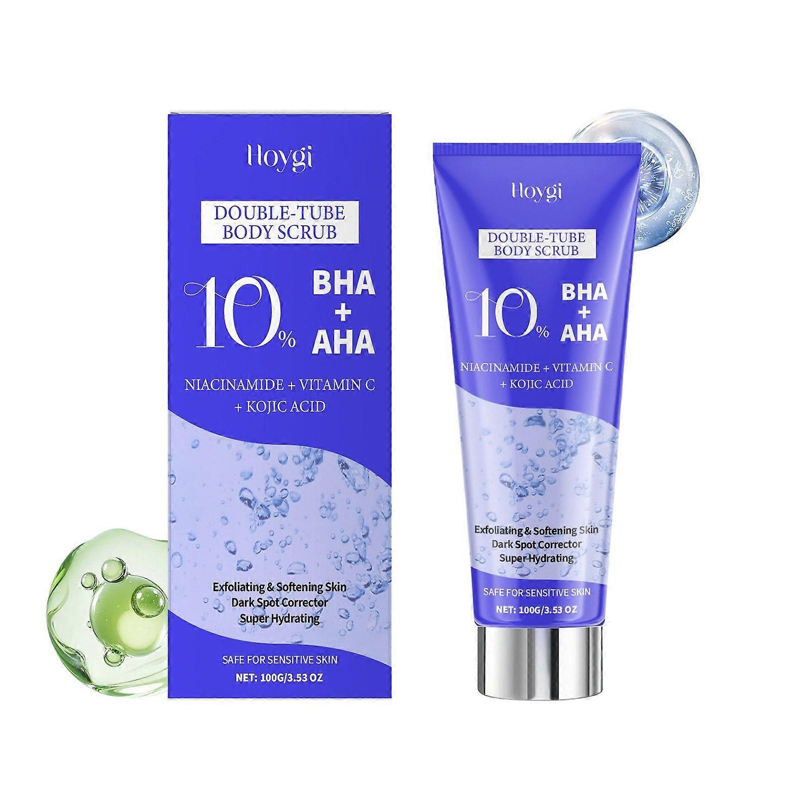 INNOVATIVE DUAL-TUBE DESIGN: Like a facial for your body, our Dual Tube Body Scrub combines chemical and physical exfoliants with antioxidants. It refines dry, rough skin and bumps, giving you radiant results in one use Gentle exfoliation to brighten skin. Deeply clean pores to improve skin texture. Rejuvenate and restore smooth and tender skin. Moisturize and nourish to increase skin smoothness.