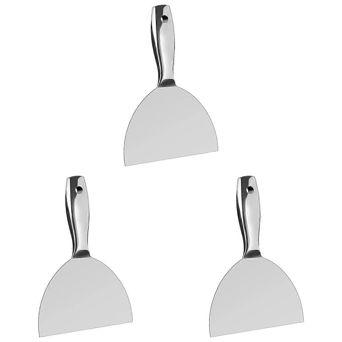 Drywall hand tools are made of high-quality stainless steel, which is rust-proof, mirror-polished and easy to clean. The putty knife is machined into one piece and is stronger and more than other knives. Stainless steel handles and blades faster application and more efficient work. The handle of the putty scraper is thickened to more streamlined and has an ergonomic grip for less effort to use. The hammer handle and hanging hole design also a good helper for homework. The blade gets thinner from base to tip. The blade tail is 1.35mm and the blade head is 0.55mm, which can withstand greater pressure, reduce the burden on the hand, and not be tiring after long-term use. Colour: silver Material: Stainless steel Size: . 23.5 x 15cm Package Contents: 3 x Putty Knife Only the above package content, other products are not included. Note: Light reflection and different displays may cause the color of the item in the picture a little different from the real thing. The measurement allowed error is +/- 1-3cm.