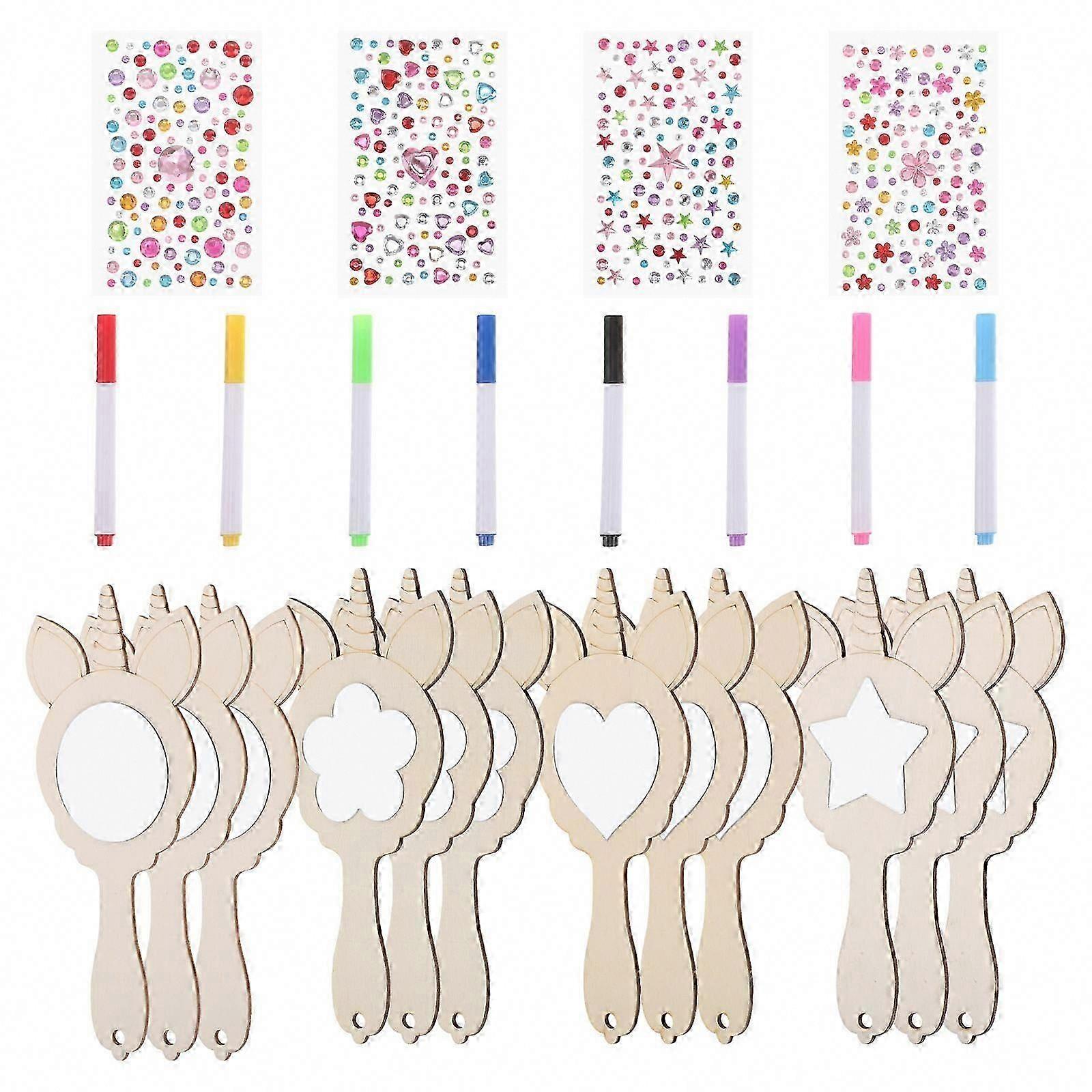 Unfinished Wooden Unicorn Hand Mirror for DIY Crafting, Assorted Colors, 1 Set Decorative Item