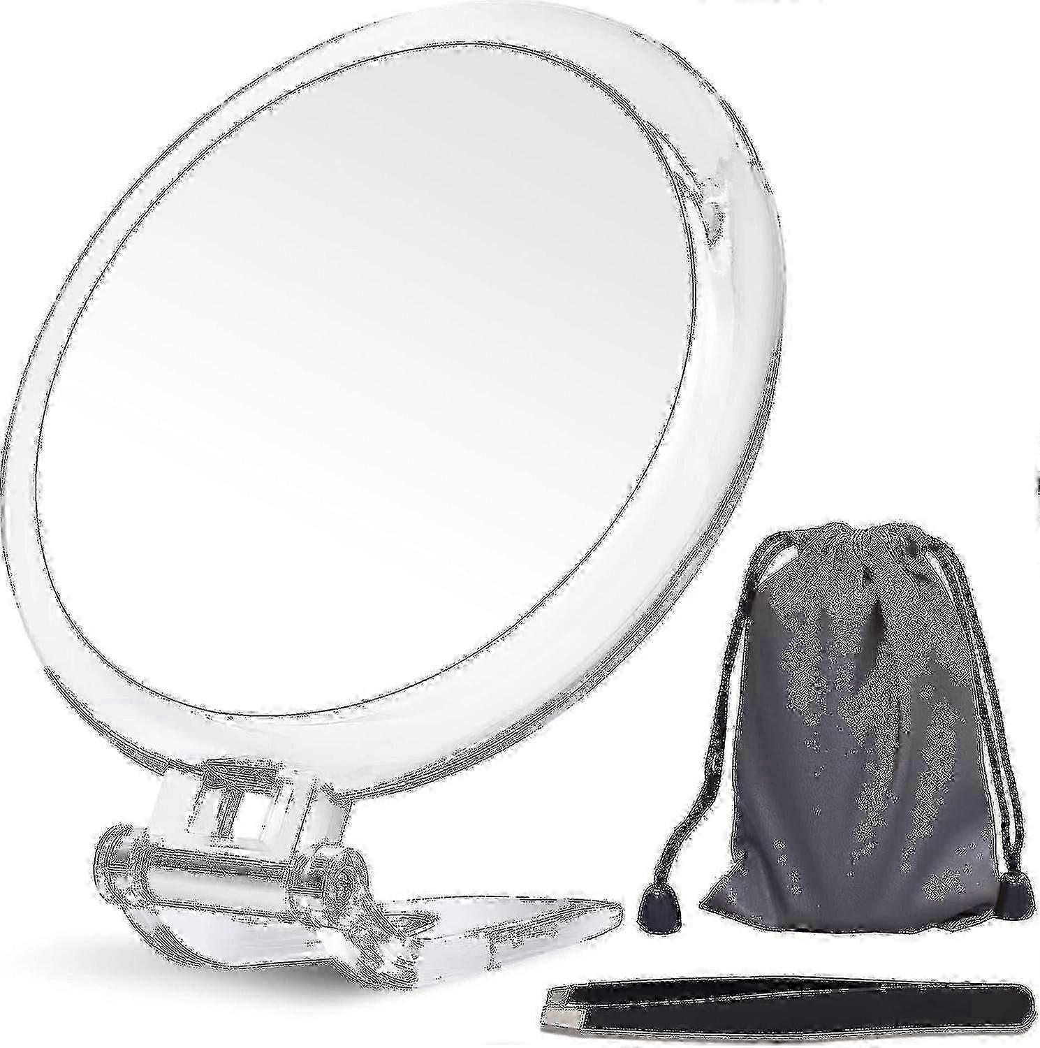 Makeup mirror, 20x/1x magnification, 5-inch double-sided folding, optical-grade glass