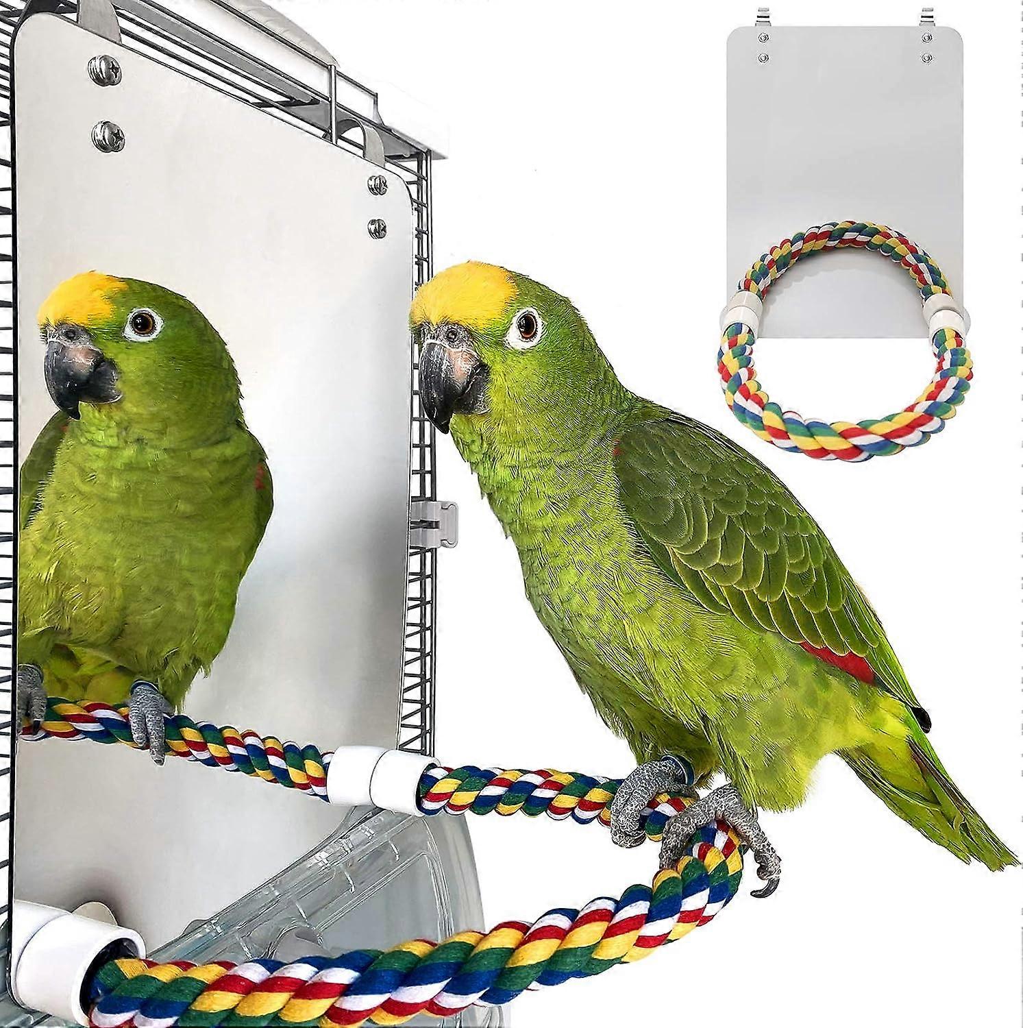 7 Inch Bird Mirror with Rope Perch Cockatiel Mirror for Cage Bird Toys Swing
