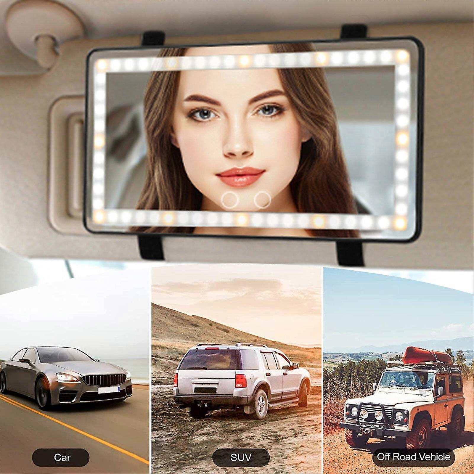 Car Visor Vanity Mirror with 3 Modes, 1500mAh, 26x13.5cm White