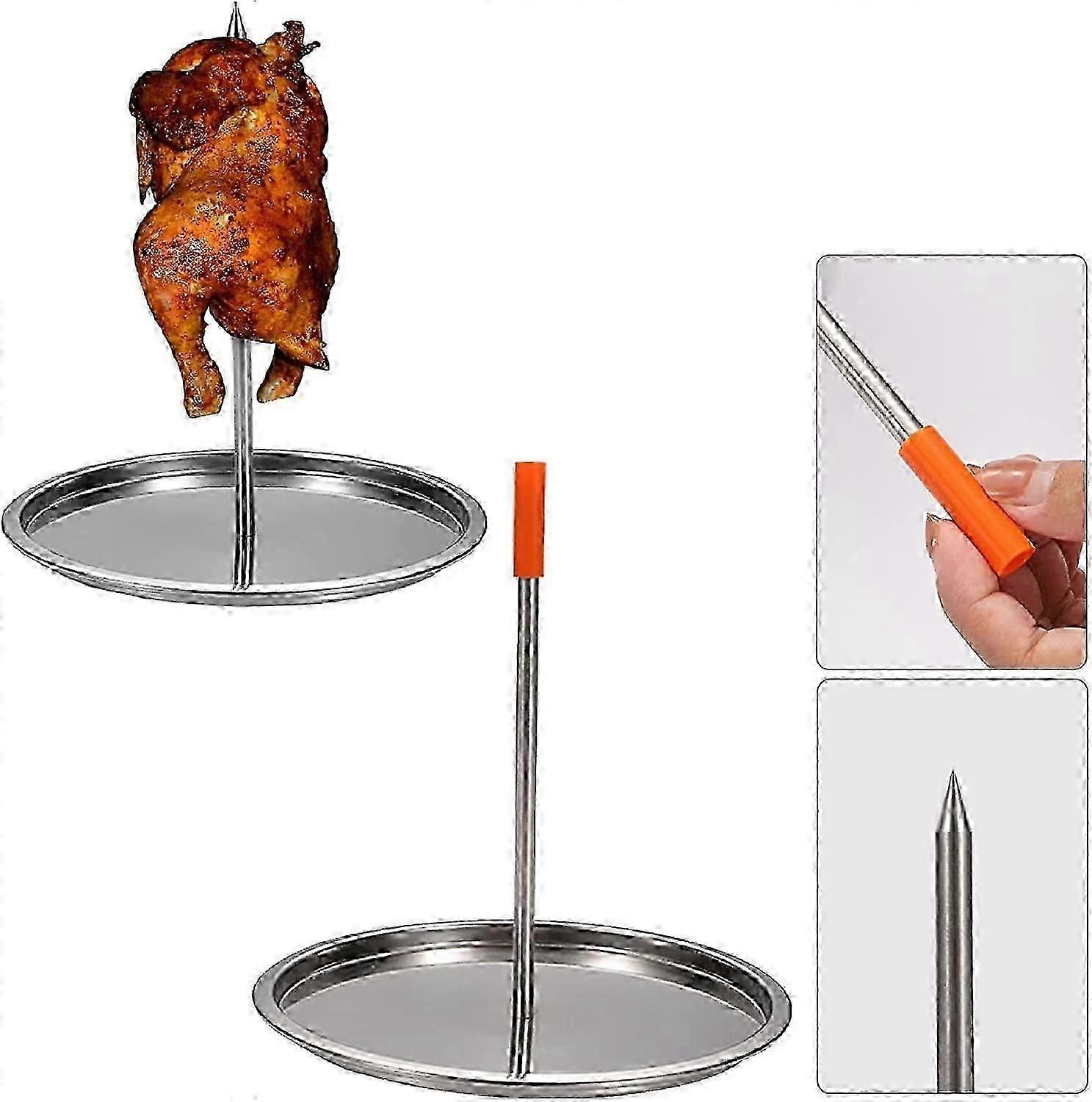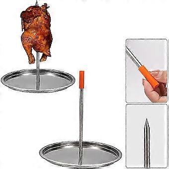 BBQ Vertical Skewer, Chicken Roaster Rack with Base Barbecue Spit Skewer Grill, Stainless Steel Roaster