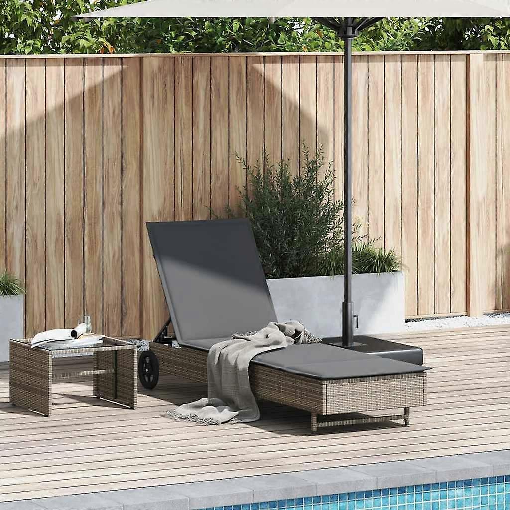 Sonnenliege mit Rollen und Auflage Grau Poly Rattan