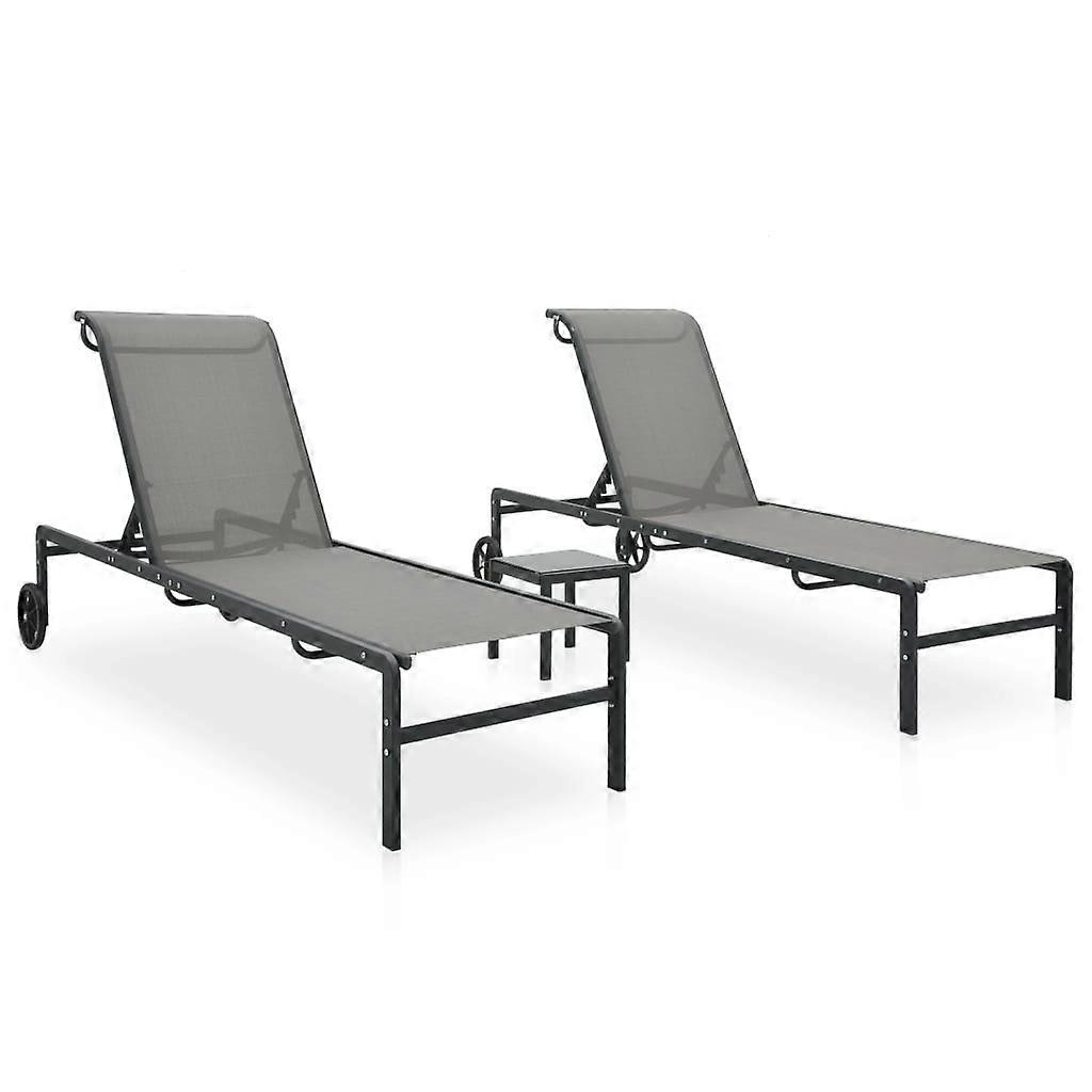 Sonnenliegen 2 Stk. mit Tisch Textilene und Stahl