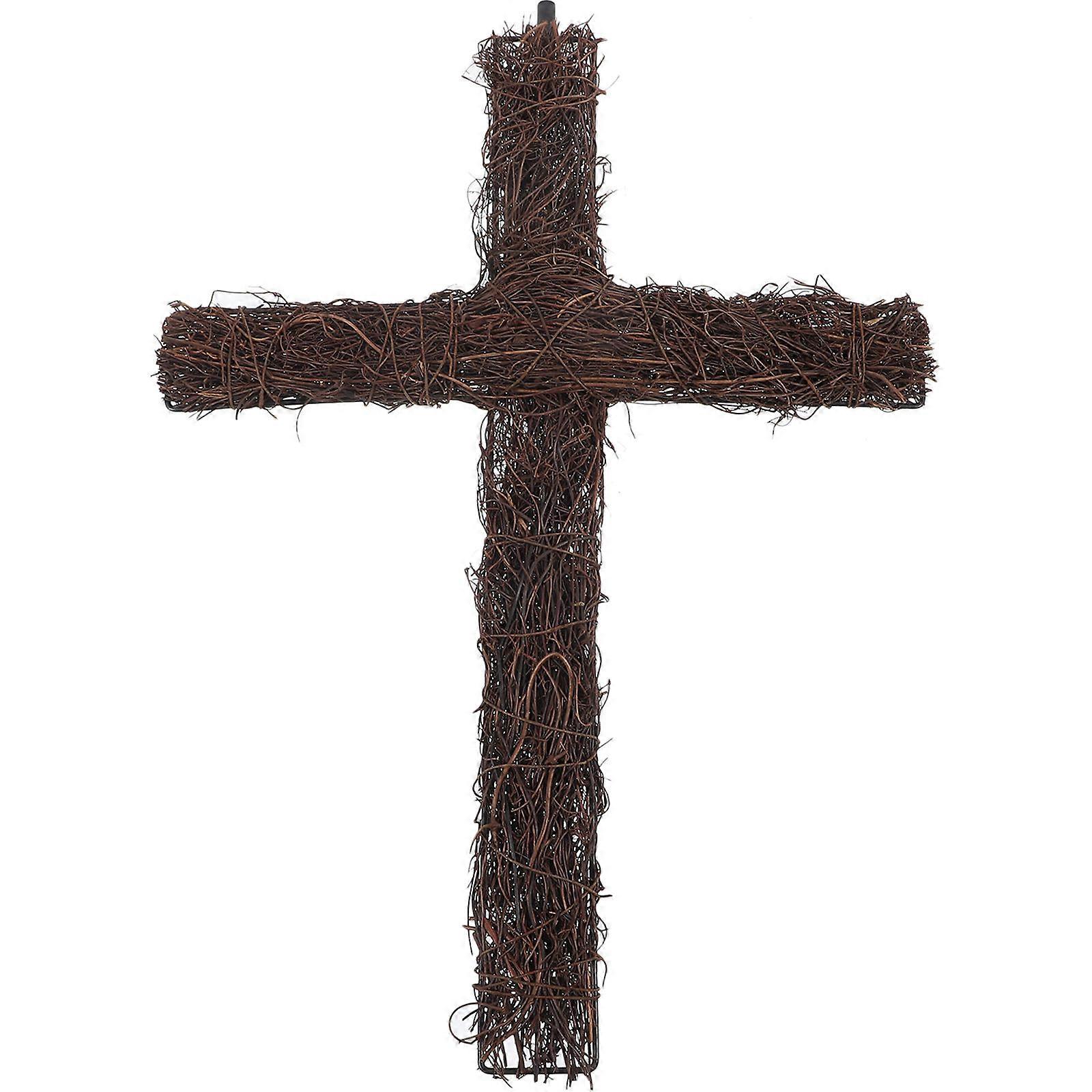 Brown Rattan Woven Cross Stake for DIY Garden Decoration with Retro Style 6.3 Inches