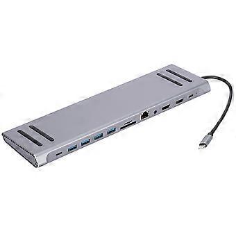 LS1094 12 in 1 Type-C to Dual HDMI Docking Station Feature 1. Multi-function interface expansion to meet multi-interface expansion needs. 2. USB 3.0 interface, easy to use and fast transmission speed. 3. HDMI connects to a large-screen TV, 4K high definition, and restores true colors. 4. Support SDTF card, dual cards can be read at the same time. 5. Gigabit network port, fast and stable Internet access. 6. Aluminum alloy shell, delicate touch, high temperature resistance, wear resistance and stable performance. Specifications 1. HDMI resolution: 4K30HZ1080P60HZ supports MST multi-screen display 2. RJ45 network card: supports 1001000M Ethernet 3. PD charging: PD fast charging 100W 4. Card reader: MICRO SDTF card supports simultaneous reading of dual cards 5. USB-C: High-speed data transfer 6. USB3.0x4: high-speed data transmission 7. Audio: 3.5mm audio port supports in-line calls 8. Wire: PVC 9. Wire core: copper wire 10. Cord length: 15cm 11. Material: aluminum alloy+ABS 12. Input terminal: USB3.1 13. Output terminal: - PD charging port x 1 - USB3.0 port x 4 - SD card slot x 1 - Micro SD TF card slot x 1 - RJ45 port x 1 - HDMI port x 2 - USB-C port x 1