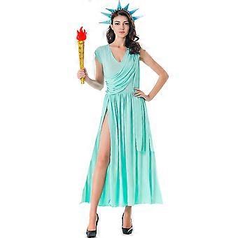 Women'S Statue Of Liberty Costume With Mint Green Maxi Dress With Crown Theme