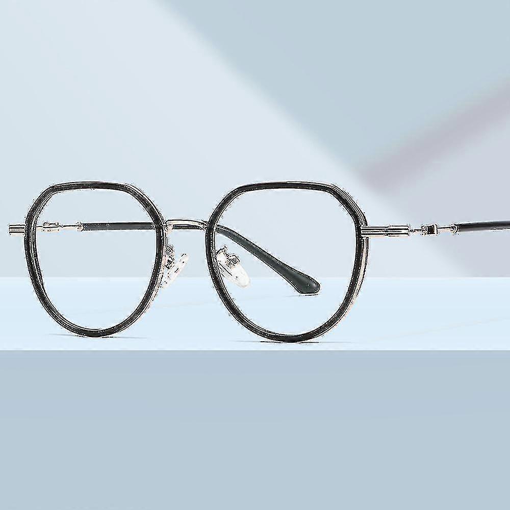 Korean Style Blue Light Blocking Glasses Thin Polygonal Frame Metal Temple -