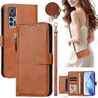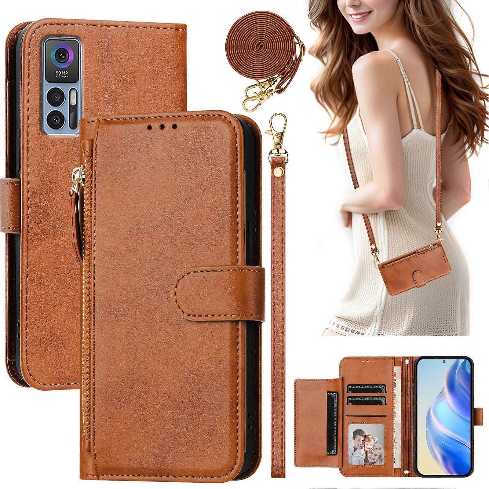 Flip Case for TCL 30 4G/5G Protection Soft PU Leather Zipper Wallet Cover with Card Holder and Long Strap