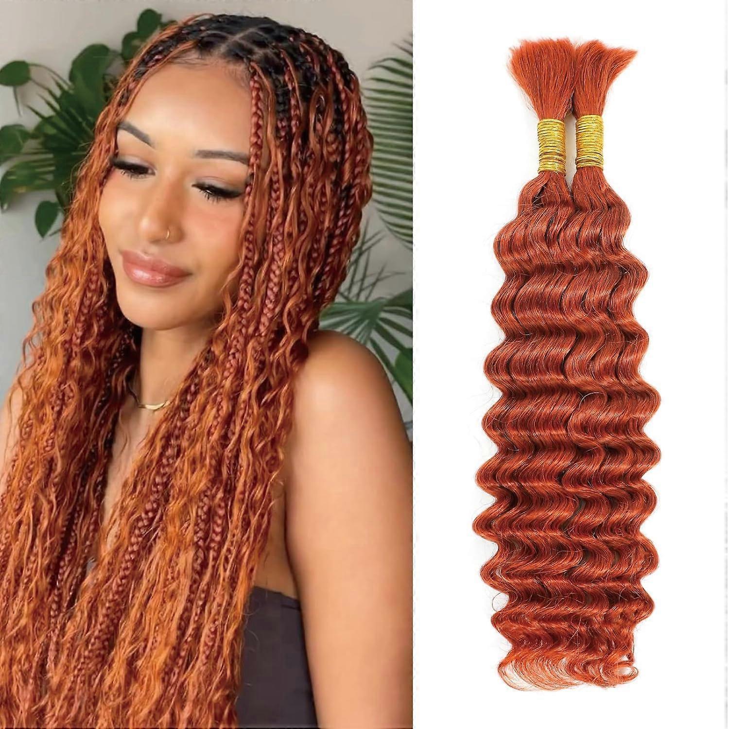 24 Inch 350 Ginger Deep Wave Human Hair Braiding Extensions, Natural Tangle Bulk Hair