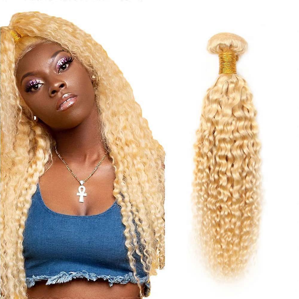 613 Honey Blonde Kinky Curly Hair Bundle 8A Grade 14 Inch 100 percent Virgin Remy Human Hair Extension 1 Bundle Why choose this bundle Natural look and feel: 100 percent virgin Remy human hair with intact cuticles preserves a lifelike texture and consistent movement. Readytostyle honey blonde color: Color 613 gives a light, warm blonde base that blends well with similar shades or acts as a light, wearable highlight. Distinctive kinky curly texture: Brazilian kinky curly pattern provides volume and hold without constant retexturing, ideal for full, natural styles. Professional grade: 8A grade denotes a higherquality cut and consistency for extended use when cared for properly. Key features Material: 100 percent virgin Remy human hair, single bundle. Color: 613 honey blonde. Texture: Brazilian kinky curly, natural curl pattern maintained through the length. Grade: 8A quality. Length: 14 inch per bundle. Function: Designed for use as hair extensions in sewins, wigs, weaves, and custom hairpieces. Compatibility: Works with common installation methods and standard salon styling tools and techniques. How this product solves common problems Adds instant length and volume for thin or short hair without chemical processing to your natural hair. Provides a consistent color option for clients who want a honey blonde look without lightening their own hair. The kinky curly texture matches naturally curly hair patterns and reduces the need for daily heat styling to create volume. Practical applications and use scenarios Everyday wear: Install as a sewin or clipin to add consistent length and fullness for daily routines while blending with natural curls. Special events: Create an updo or full curly style for weddings, photo shoots, and parties where polished, longlasting texture is needed. Custom wig or unit: Use as the base bundles when constructing a custom wig or lace unit for a cohesive honey blonde finish and natural curl pattern. Styling and care tips Detangle gently with a widetooth comb starting from ends and working up to the roots. Use moisturizing products formulated for human hair to maintain curl definition and softness. Heat styling and coloring are compatible with virgin Remy hair, but perform strand tests and professional coloring to avoid unintended results. Store in a breathable bag or on a wig stand to preserve curl shape between uses. What to expect One 14 inch bundle in 613 honey blonde with Brazilian kinky curly texture. A 8A grade human hair bundle designed for flexible styling and professional installations. This bundle is suited for stylists and individuals looking for a single quality, light blonde kinky curly extension to build volume, create custom units, or blend with similarly colored hair.