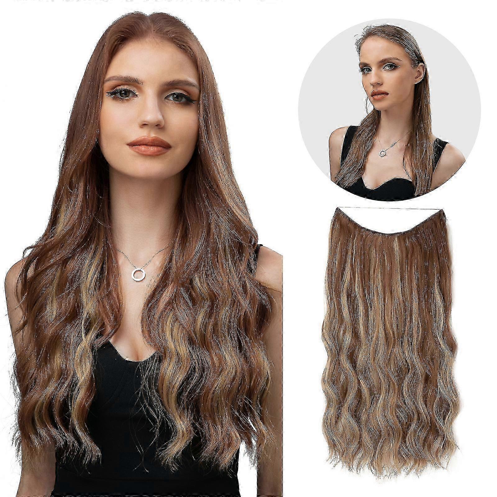 Long Wavy Hair Extensions for Halo Brand, Invisible Wire Adjustable Headband