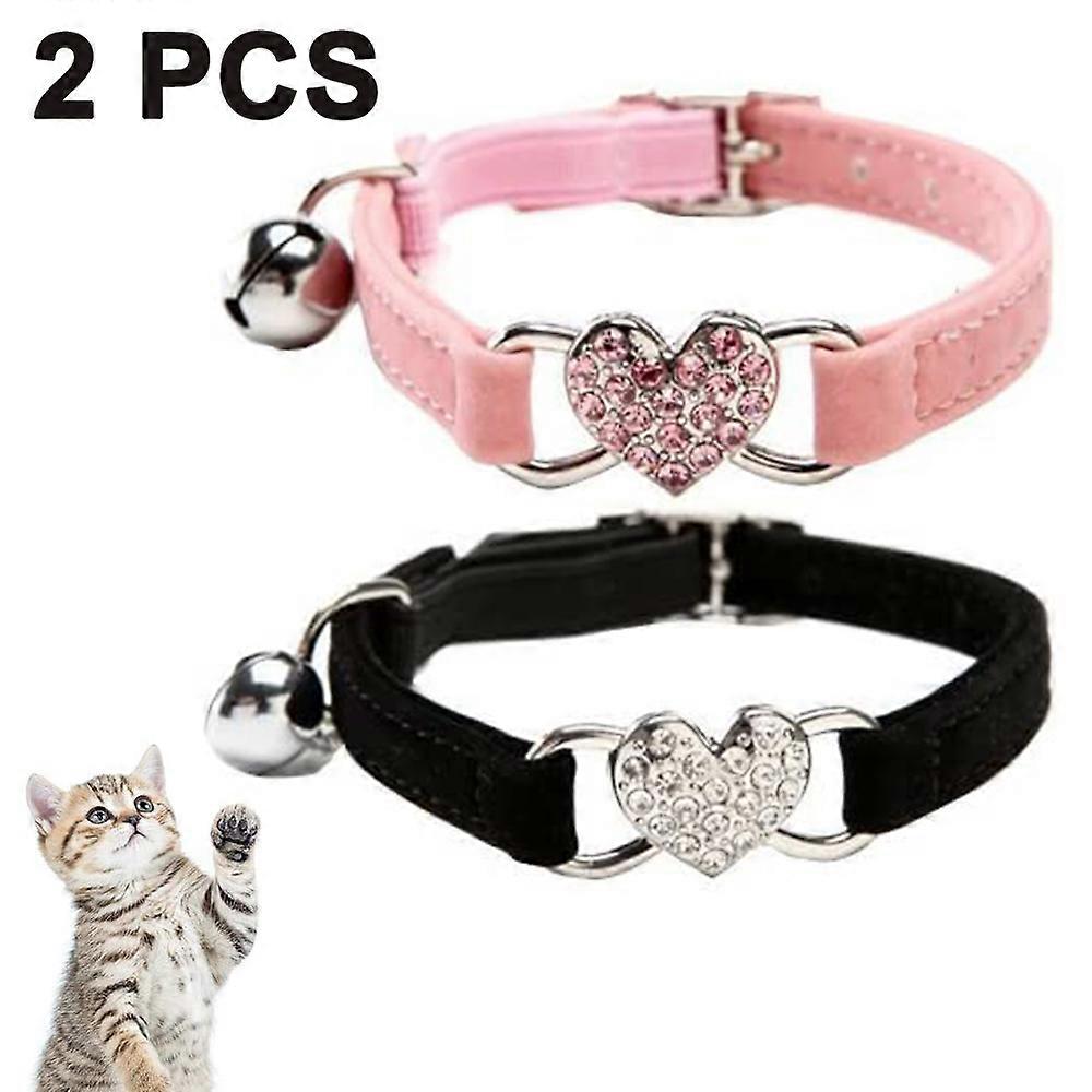 Adjustable Cat Neck Band With Bells And Heart Pendants With Crystal Stones, Safety Collar