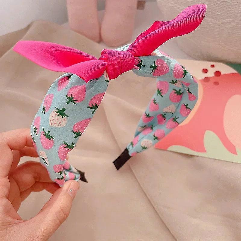 Strawberry Print Knot Bow Headband - Sweet Korean Style Hairband Accessories