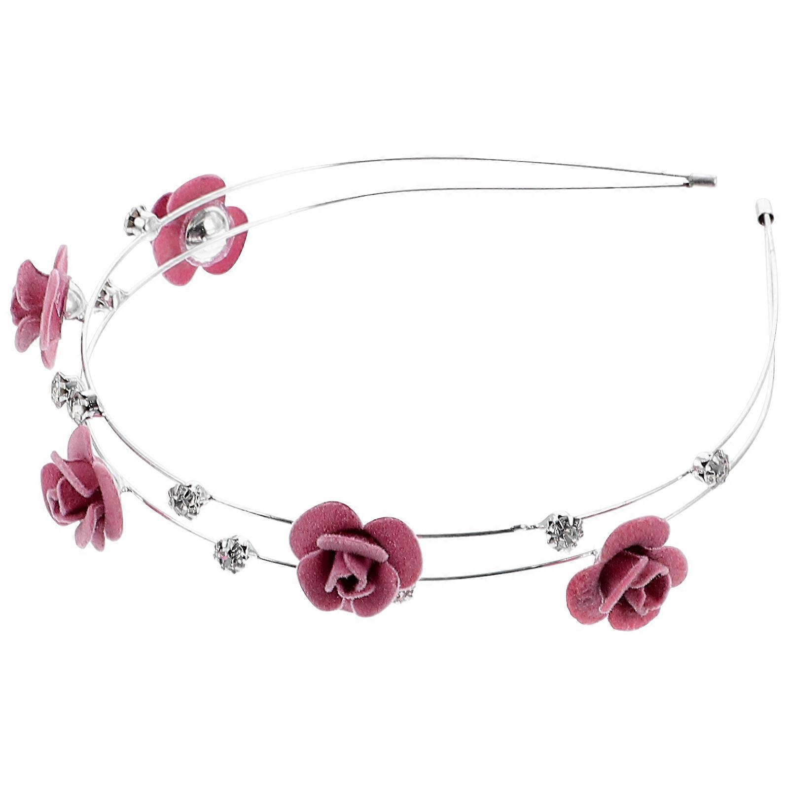 Double Layer Headband for Pink Rhinestone Inlaid Stylish Metal Hair Decor