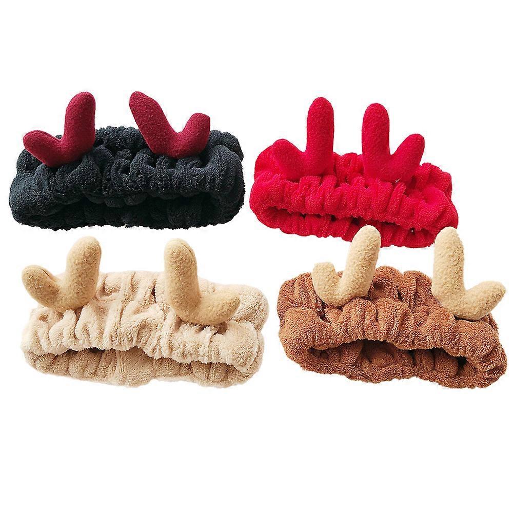 Antler Makeup Hair Band Elastic Headband for Shower 4Pcs Assorted Color