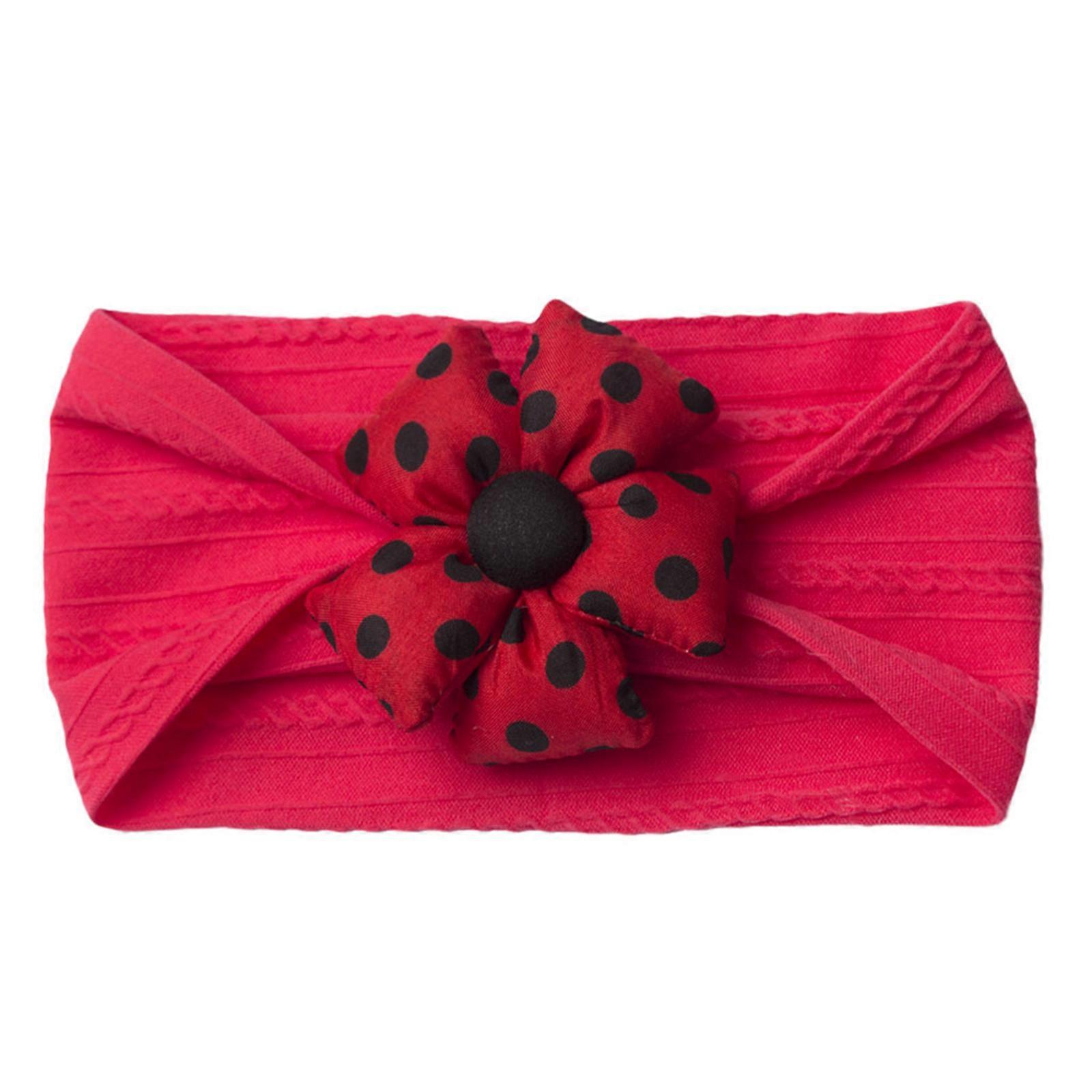 Baby Flower Charm Headband Elastic Hair Band Turban Headwear Decorative Stretchy Hair Adorment for Newborns Toddlers Red