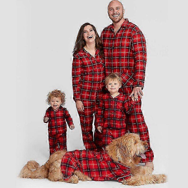 Christmas Family Matching Pajamas Plaid Cotton Mother Father Baby Kids And Dog Family Matching Clothes