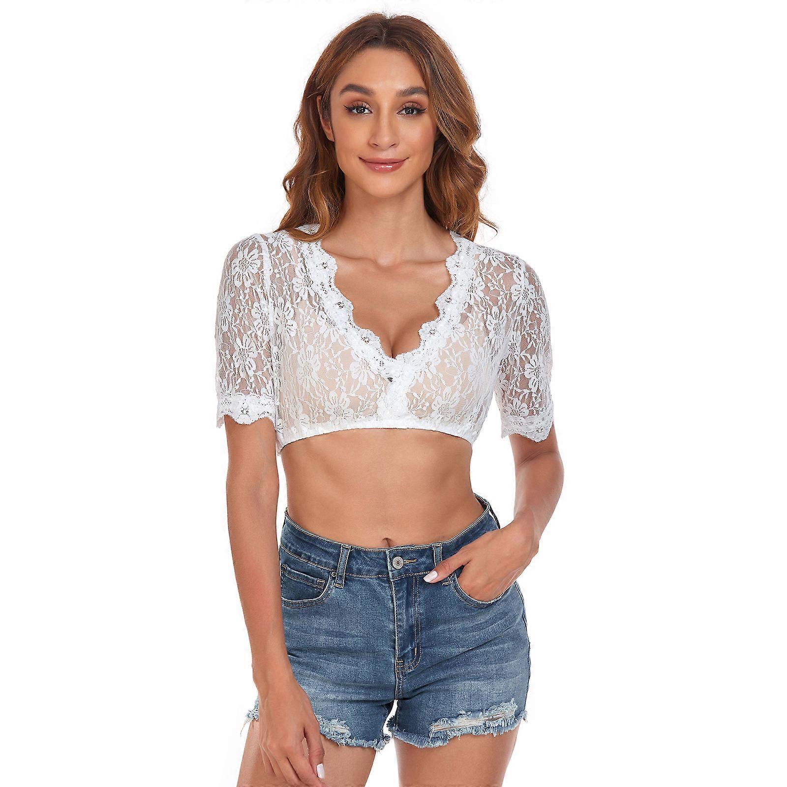 Women's Bavarian Oktoberfest Costume Traditional Dirndl Blouse Beer Garden Crop Top
