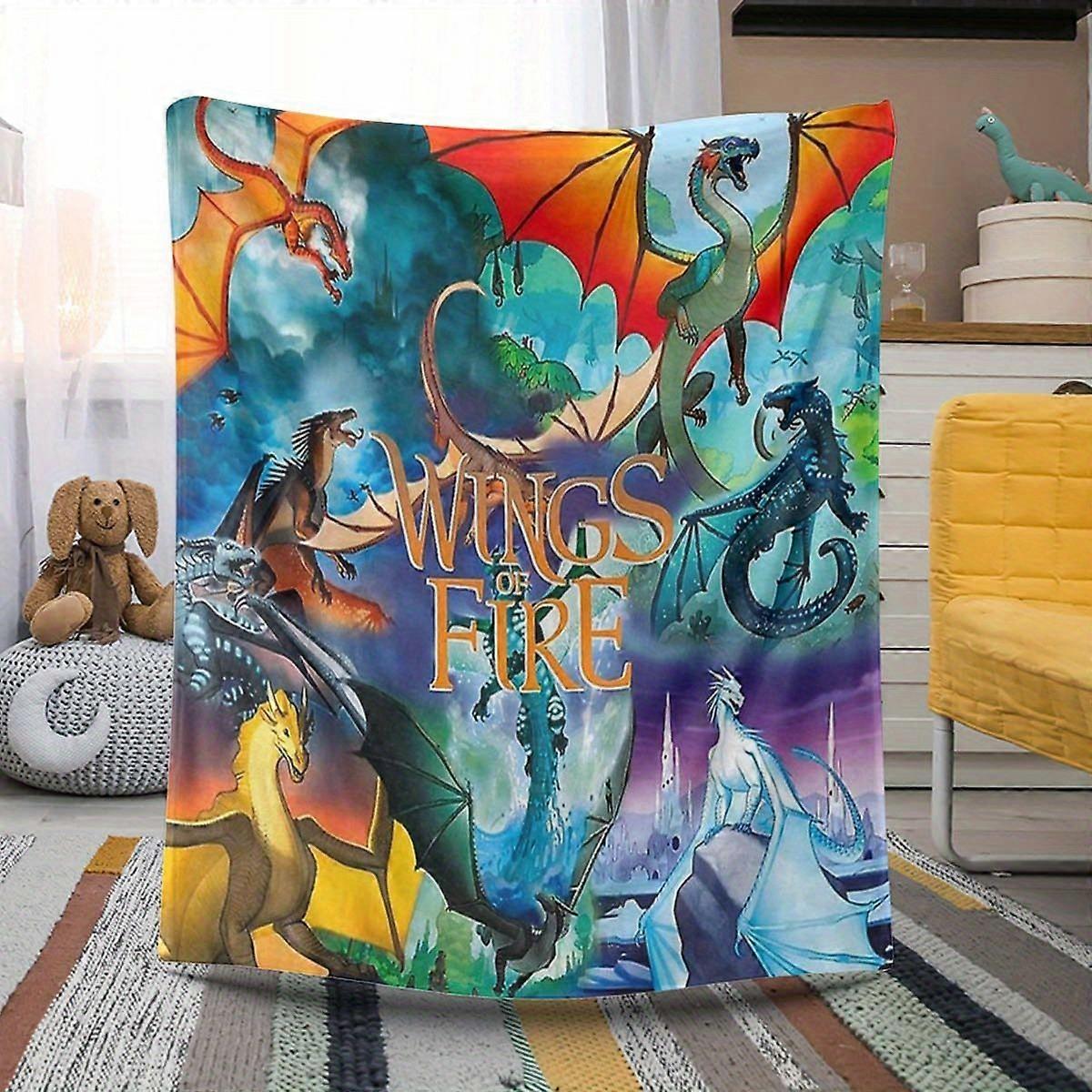 Fantasy Dragon-Themed Flannel Blanket - Hypoallergenic, Soft & Warm, Vibrant Multicolor Design with Mythical Creatures &-dfghj98