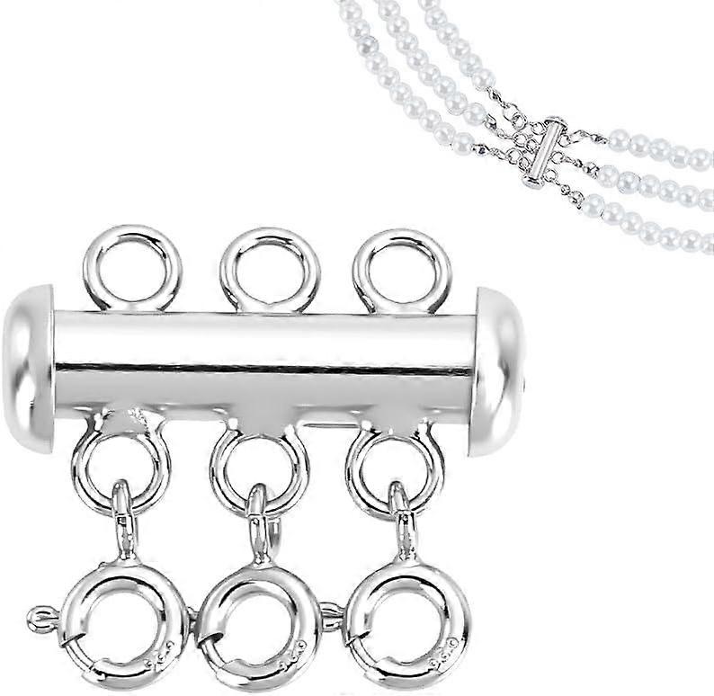 925 Sterling Silver Layered Necklace Lock Clasp 3-Strand Multi Necklace Layering Clasp Layered Separator Beads Chain for Extender Necklaces Bracelet S
