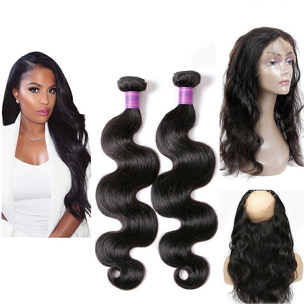 Brazilian Virgin Hair Body Wave 360 Lace Frontal Closure with 2 Bundles Natural Hairline 14inch