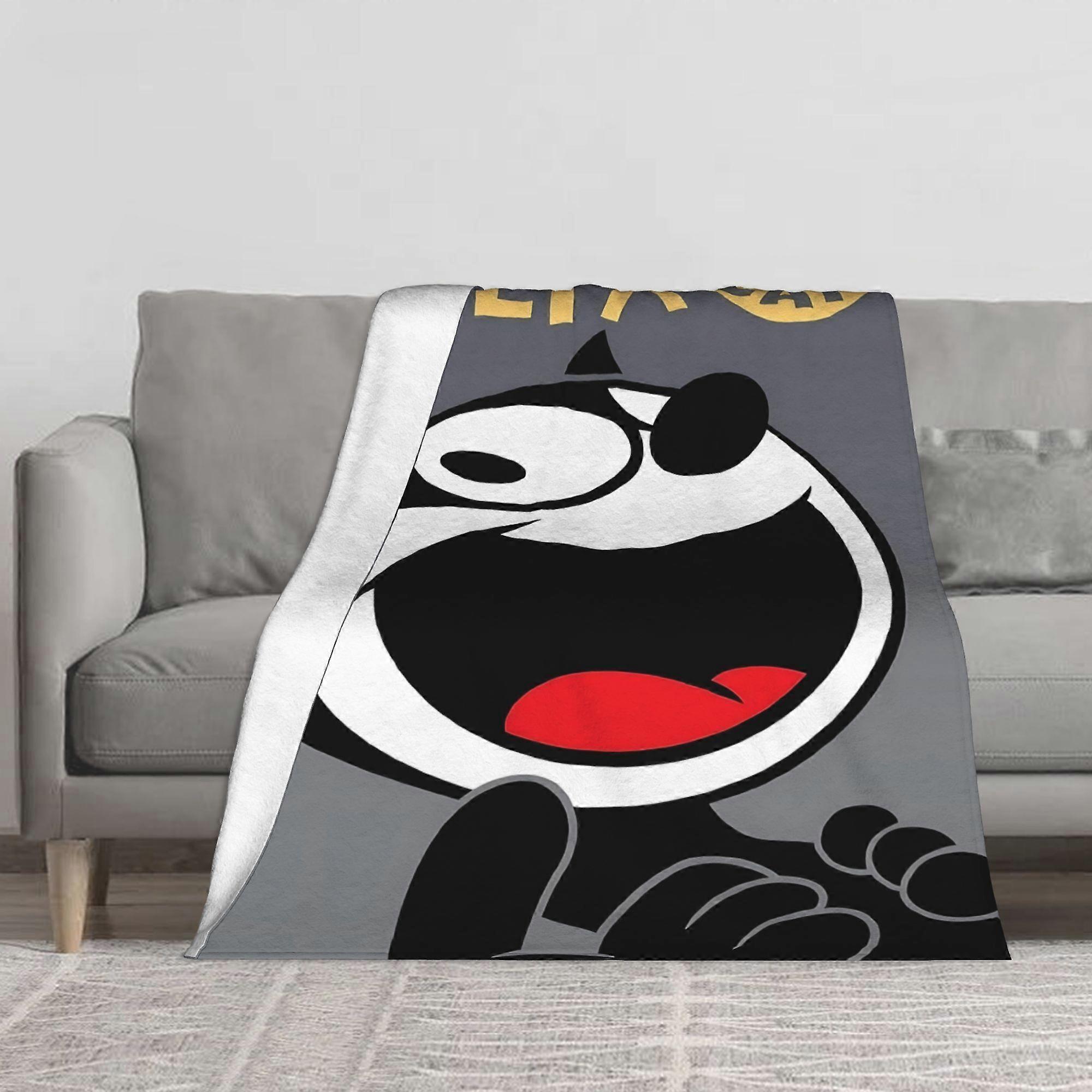 Felix the Cat Logo Plush Blanket - Soft Flannel Throw with Black & White Cartoon Design, Lightweight & Warm for Sofa, Be-LMNBV340