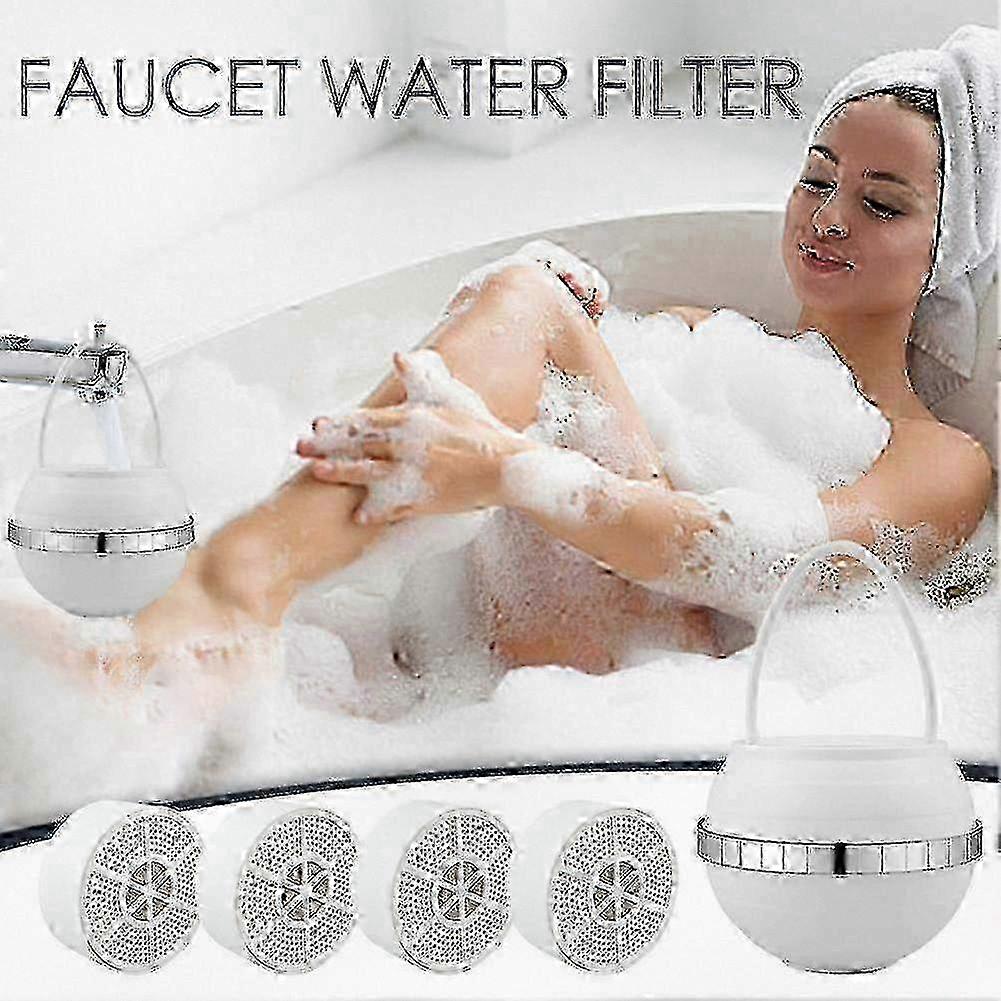 White Bath Ball Filter with 8-Level Filtration for Softer Skin and Hair - Compatible with Yvan Products