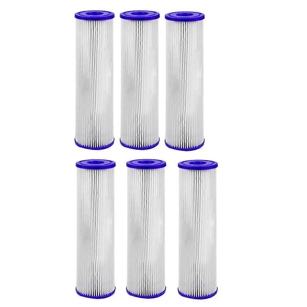 Efficient and Accurate Filtration: 20 water filter offers filtering for well water. Made of non-woven polyester, pleated water filter captures sand, rust, and dirt, transforming water into a refreshing experience. Long-Lasting Pleated Filter Design: Enjoy an extended lifespan with our water filter cartridges. The pleated structure provides greater dirt-holding capacity, meaning fewer filter replacements, so this way reducing maintenance. Effortless & Universal Fit: Designed for universal compatibility, pleated sediment filter fits perfectly into 10-inch water filter housing. Whether for an RO system or whole home water filtration setup, this home water filter integrates seamlessly. Superior Protection for Your Plumbing: This whole house sediment filter not only improves your water quality but also protects plumbing and appliances. Consistent Water Pressure, No Compromise: water filter replacement 's large area ensures efficient filtration while maintaining a steady rate, giving you the best of both -clean filtered water and strong pressure. Reusable, Sustainable Water Filtration: Our water filters cartridges offer a sustainable choice for eco-conscious consumers. Color: Blue & White Material: polyester fiber Package Contents: 6 x Filter Only the above package content, other products are not included. Note: Light reflection and different displays may cause the color of the item in the picture a little different from the real thing. The measurement allowed error is +/- 1-3cm.