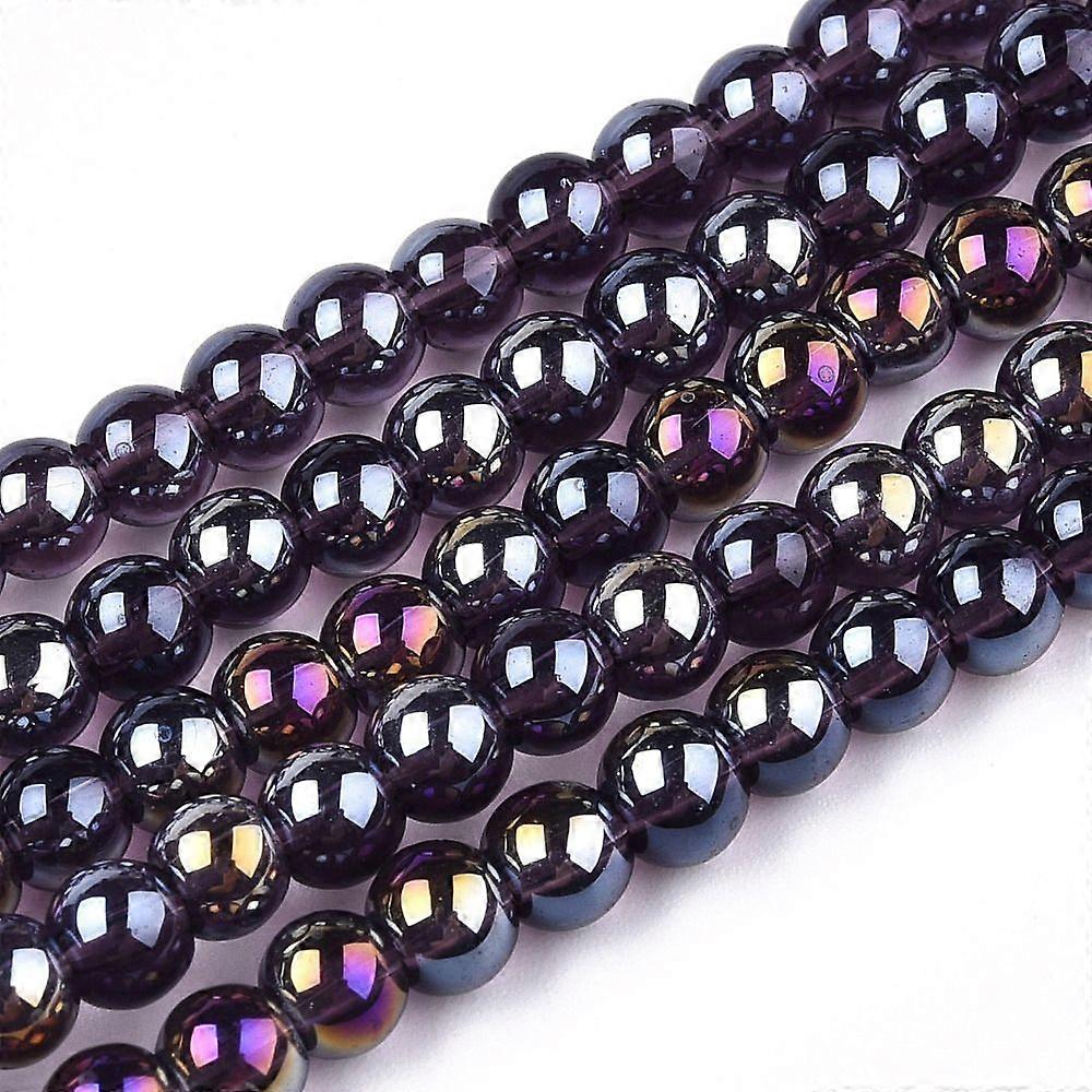 Electroplate Transparent Glass Beads Strands AB color Plated Round Purple 4~4.5mm Hole: 0.8mm 97~99pcs/strand 14.76 inch~14.96 inch(37.5~38cm)
