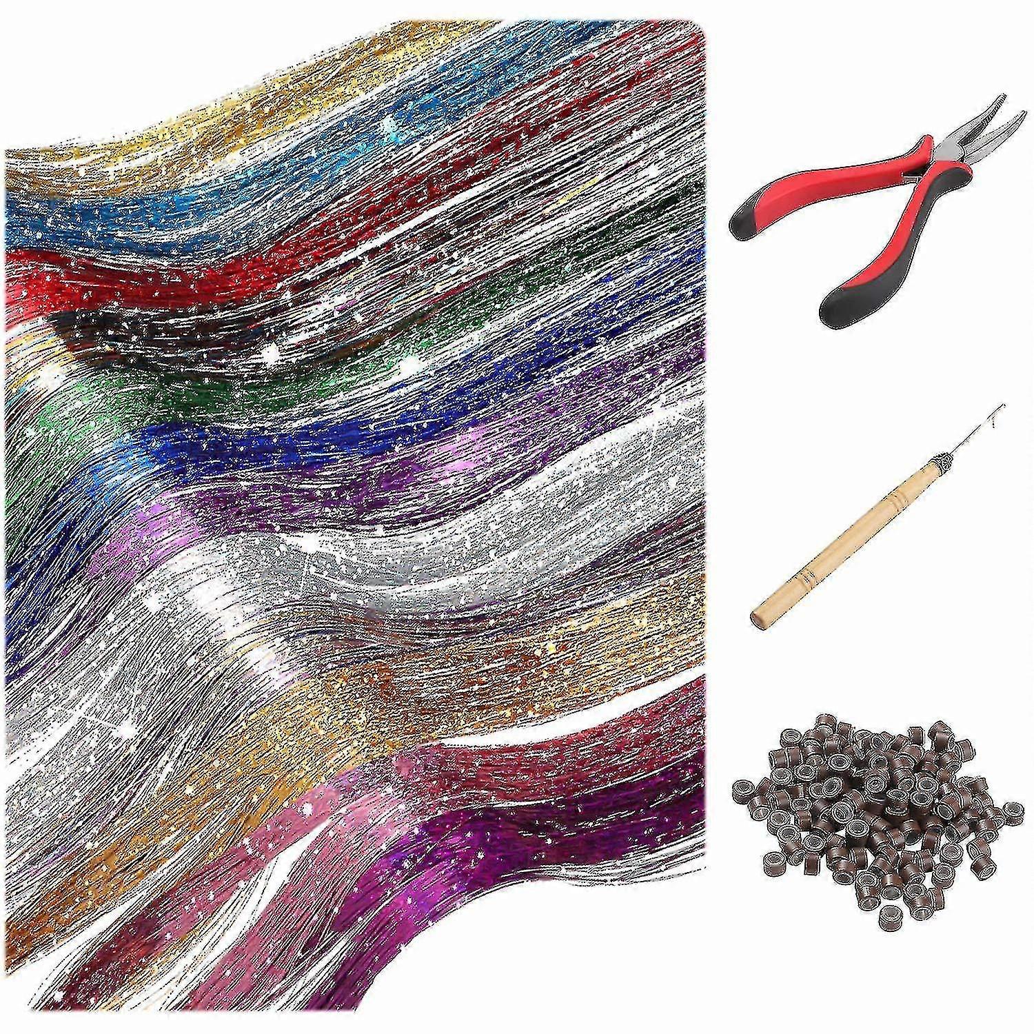 Hair Tinsel Strands With Tools 12 Colors 1800 Strands Fairy Hair Heat Resistant Glitter Hair Tinsel Strands Kit