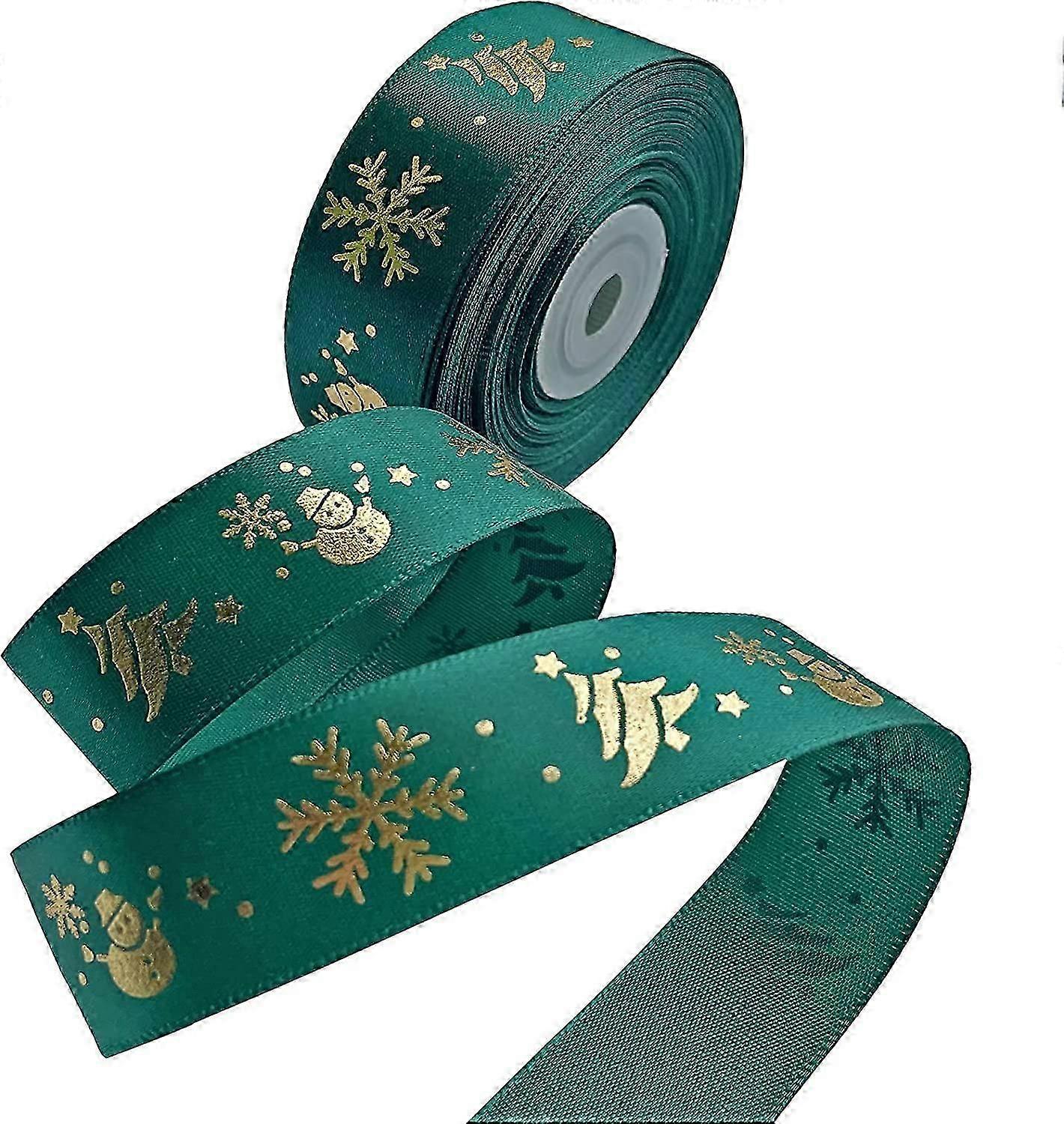 22 Meters Christmas Ribbon Satin Ribbons Printed with Golden Christmas Tree Snowman Snowflakes, Merry Christmas Ribbon for Decoration and Gift Wrappin