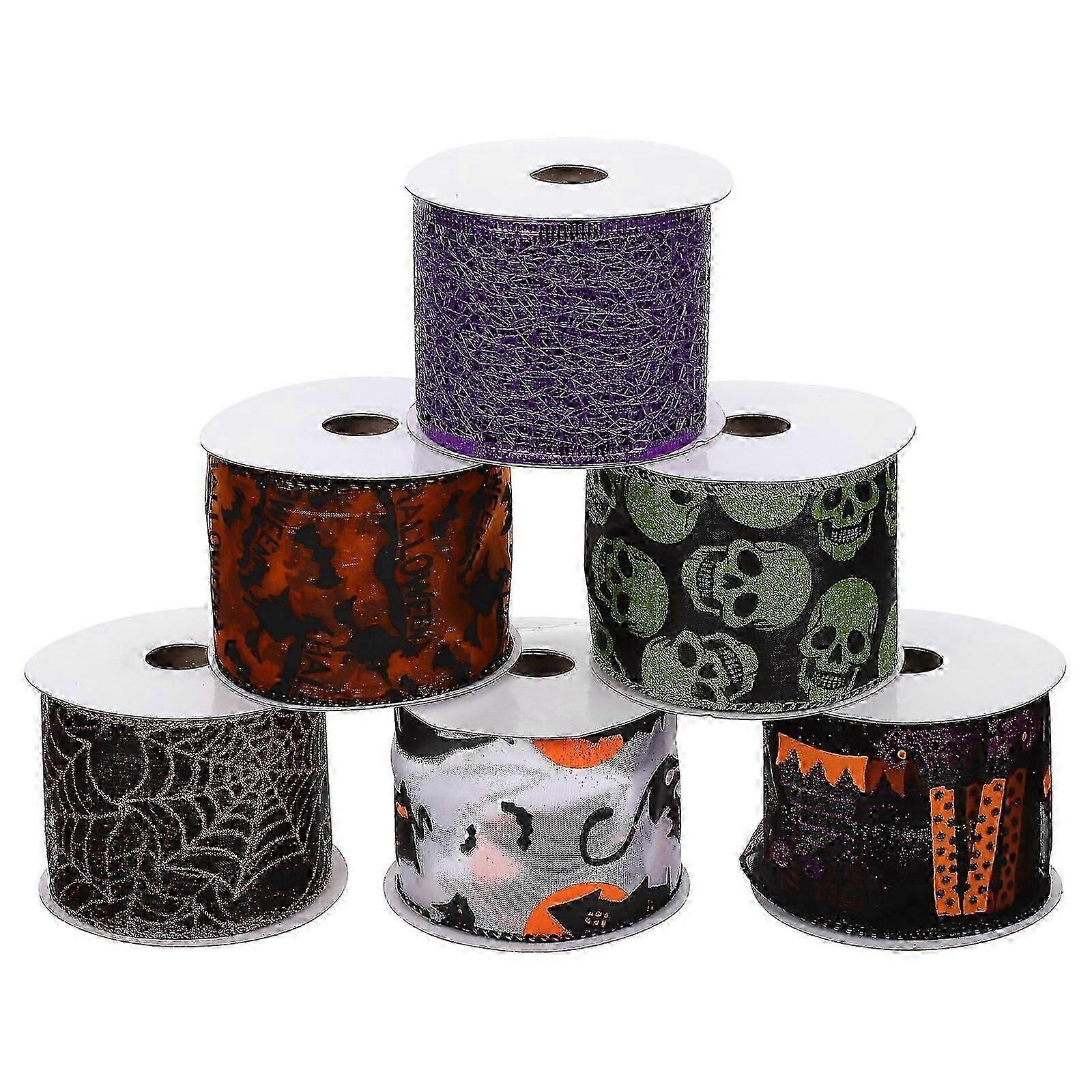 Wired Edge Ribbons Halloween Design Assorted Color 540X6.3cm Floral Projects 6 Rolls