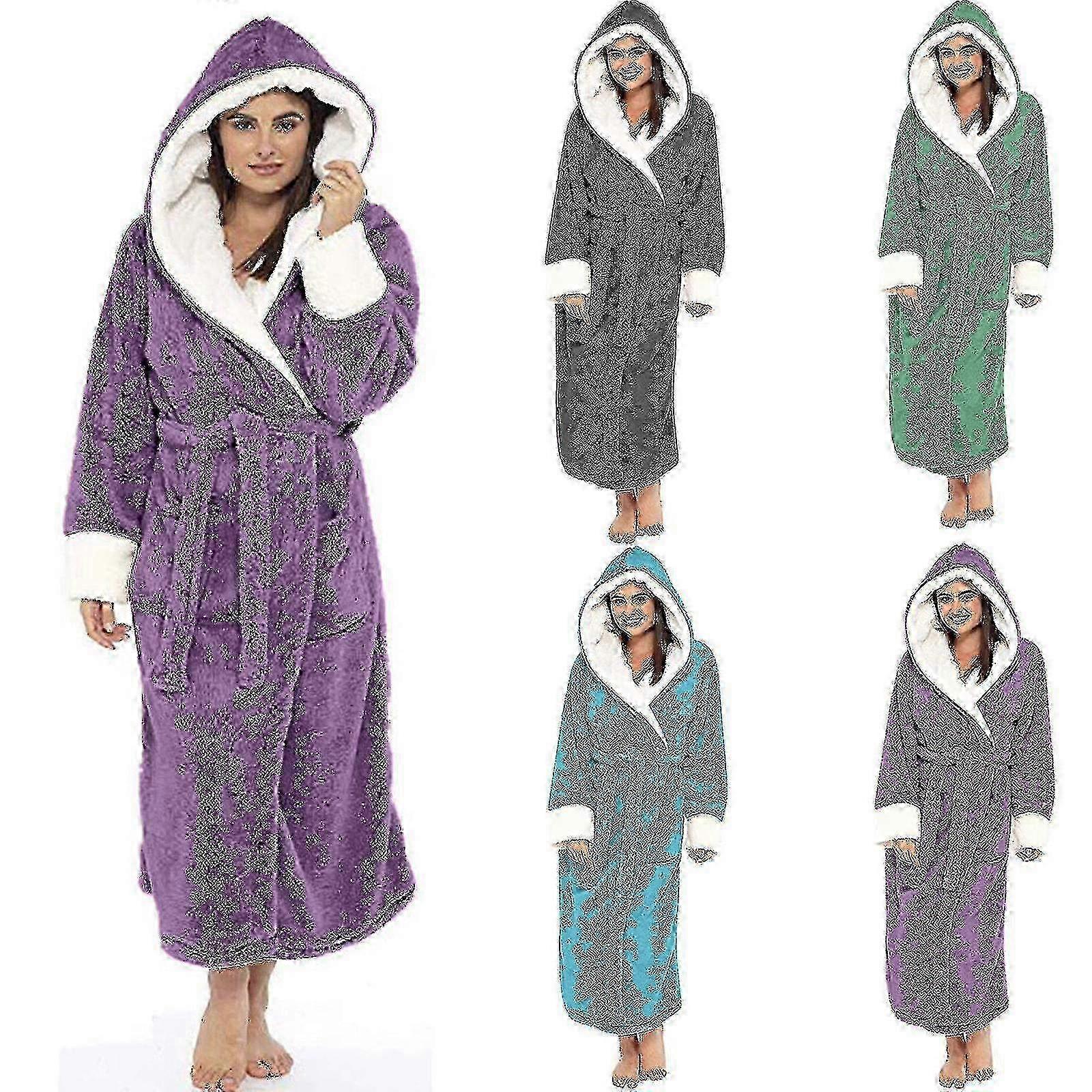 Fleece Bathrobe Women Soft Dressing Gown Hooded Fluffy Towling Bath Robe