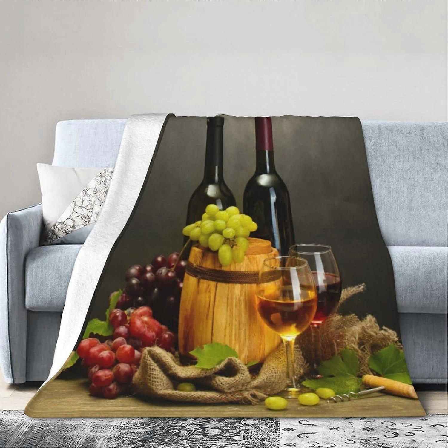 Fleece Blanket Bottles and Glasses of Wine and Ripe Grapes On Wooden Table Decorative Picture Throw Blanket for Couch So-asdfg437
