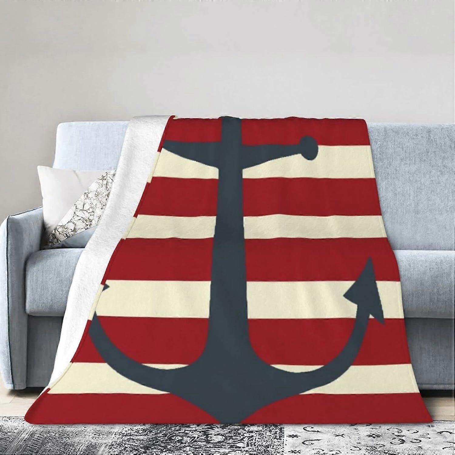 Fleece Blanket Vintage Style Anchor and Red White Stripe Digital Print Throw Blanket for Couch Sofa,Soft Warm Bed Blanke-pasxc4