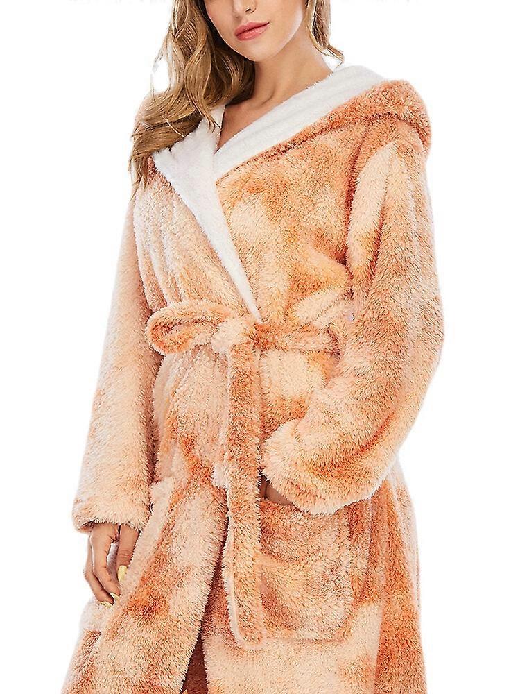 Women's Tie Dye Fleece Hooded Sleepwear Robe With Pockets