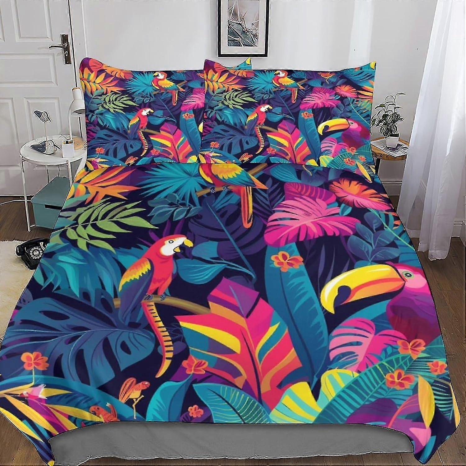 Colorful Flowers 3 Pieces Duvet Cover 3D Print Romantic Theme Bedding Set with Microfiber and Hidden Zipper Closure with Pillowcases for Kid